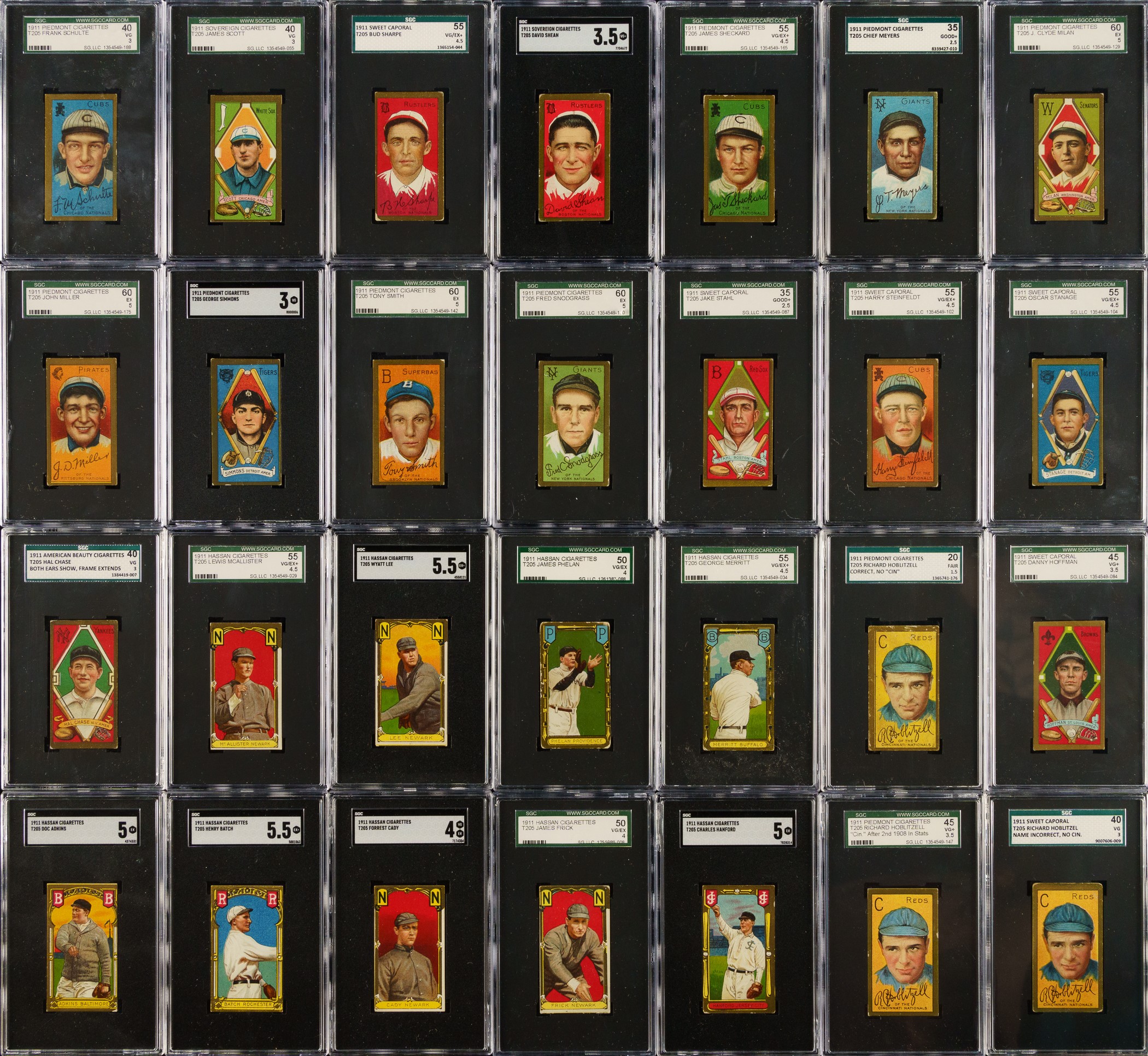 1911 T205 Gold Border SGC-Graded Near-Complete Master Set (174/221)