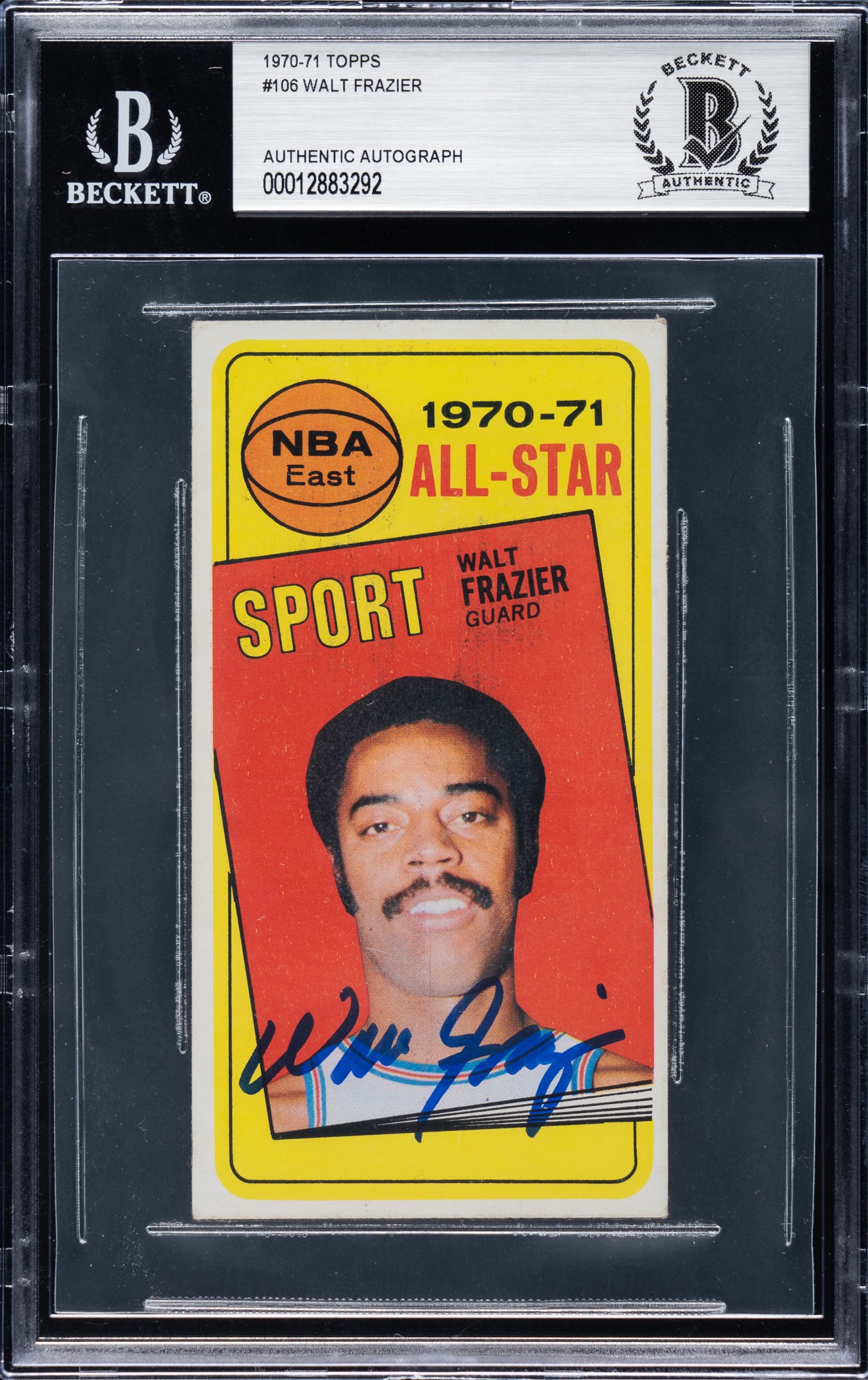 Beckett has encapsulated the card and certified the signature as Authentic. New York Knicks Hall of Famer Walt Frazier. Opening Bid $10.