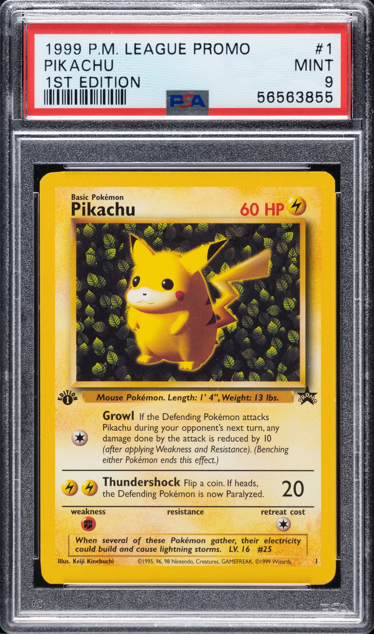 1999 Pokemon League Promo #1 "Ivy" Pikachu 1st Edition Error! PSA MINT 9