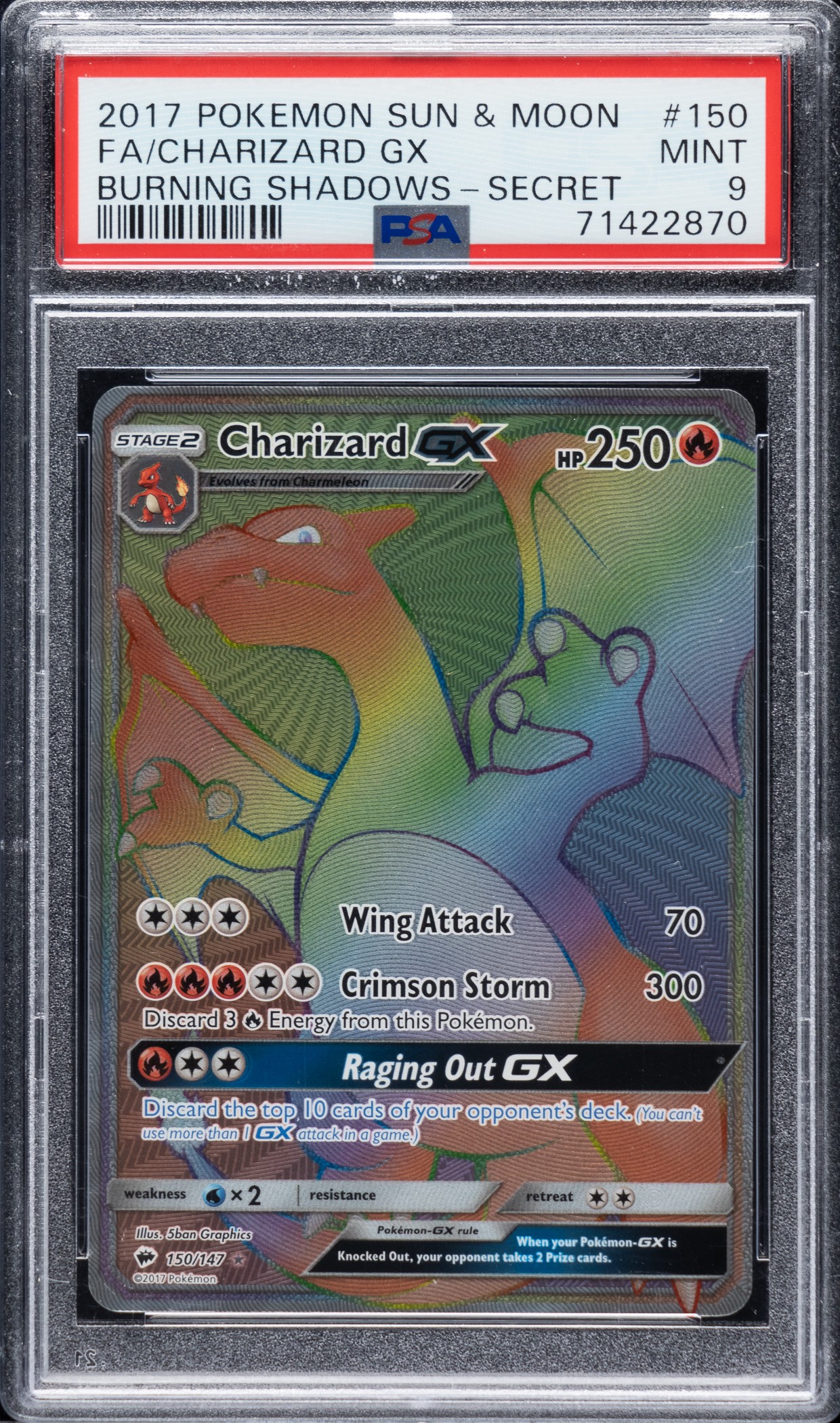 2017 Pokemon Sun & Moon Burning Shadows #150 Charizard GX Full Art Secret Rare Holographic PSA MINT 9
