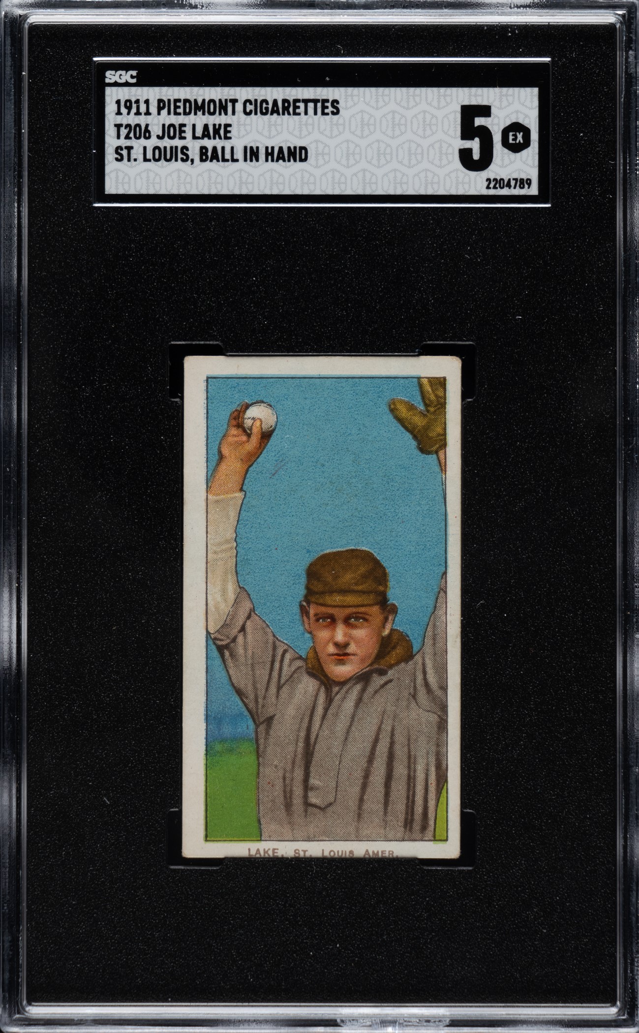 1909-1911 T206 White Border Joe Lake St. Louis, Ball in Hand SGC EX 5