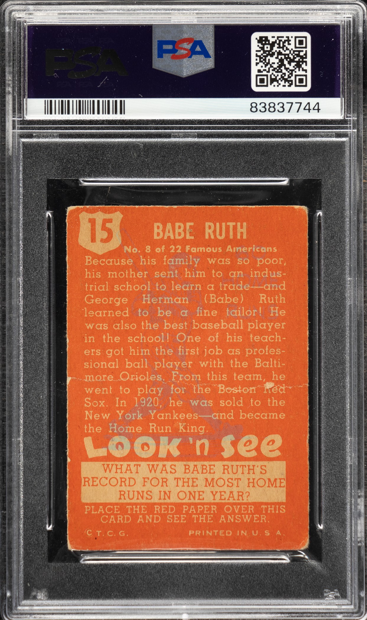 1952 Topps "Look 'n See" #15 Babe Ruth PSA FAIR 1.5