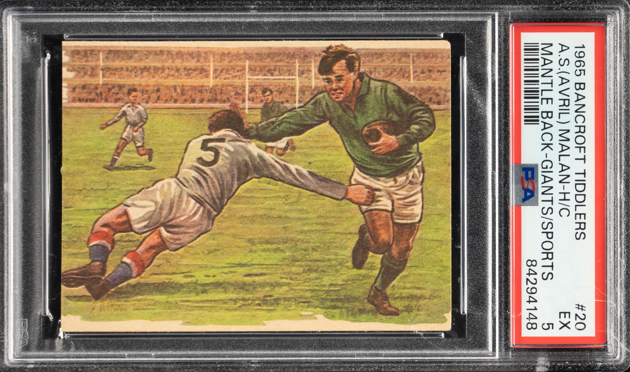 1965 Bancroft Tiddlers #20 Avril Malan Mickey Mantle Back PSA EX 5