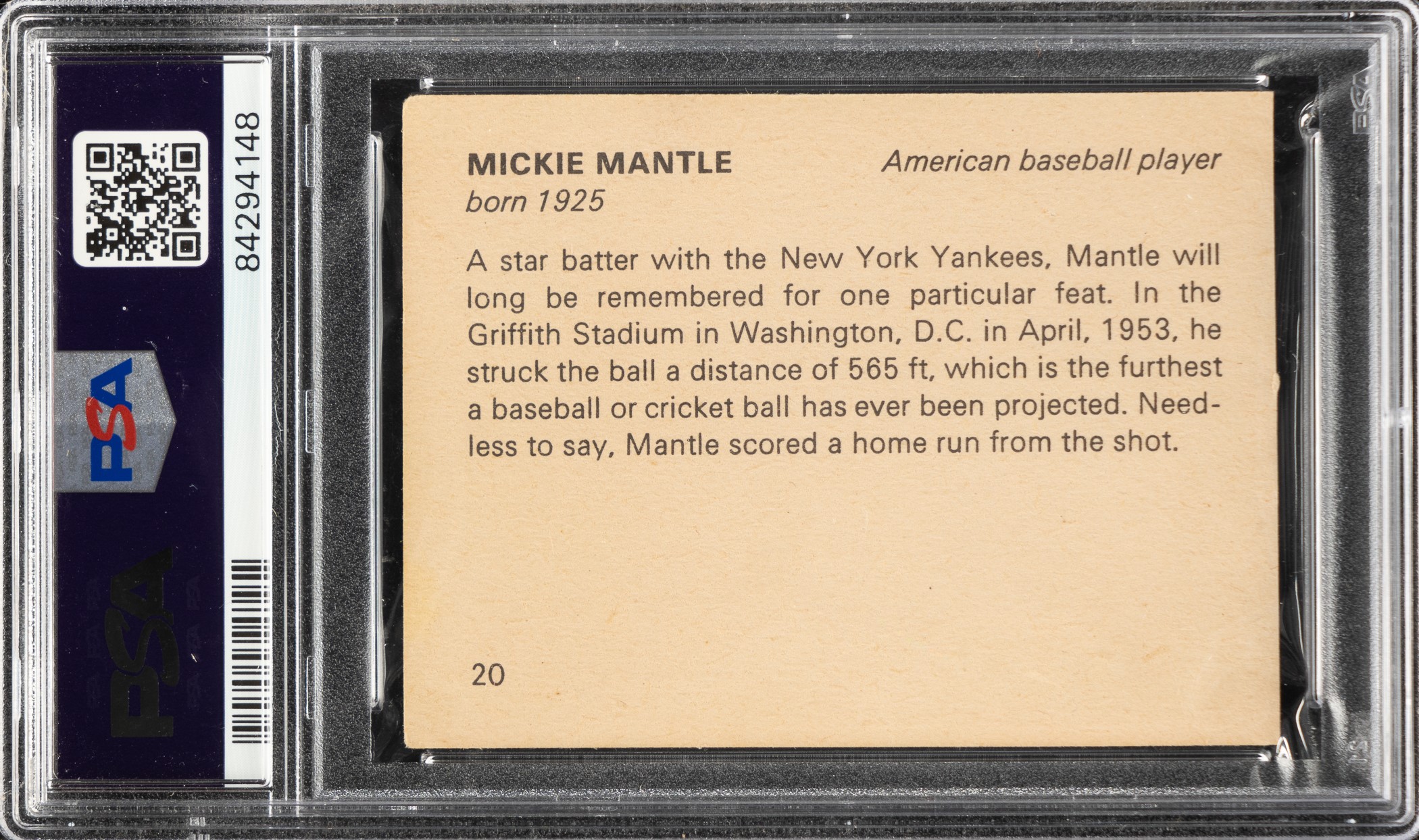 Graded EX 5 by PSA. New York Yankees Hall of Famer Mickey Mantle. Opening Bid $10.