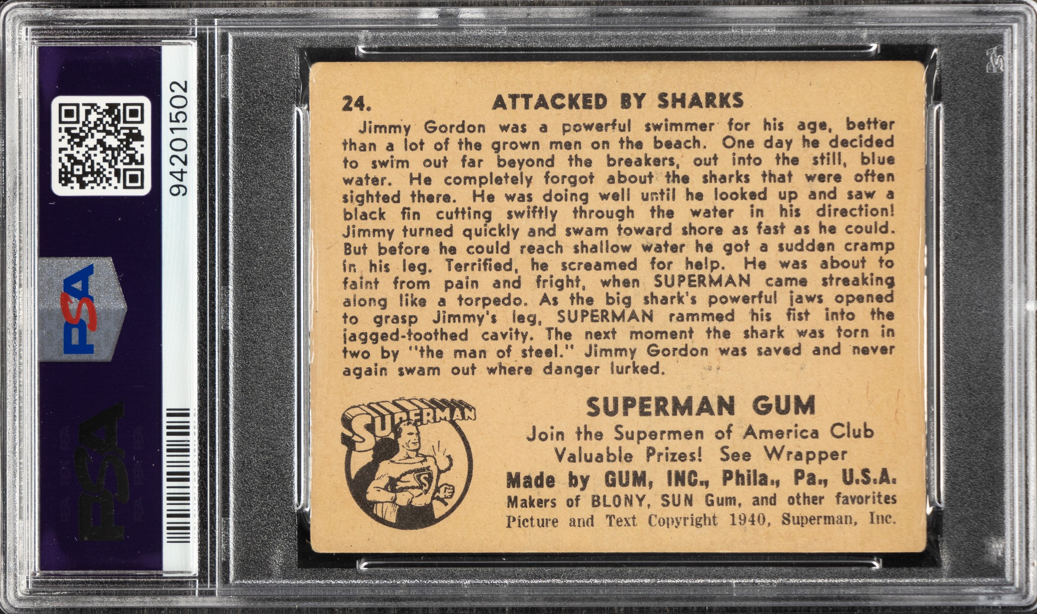 1940 R145 Gum, Inc. "Superman" #24 "Attacked By Sharks" PSA VG 3