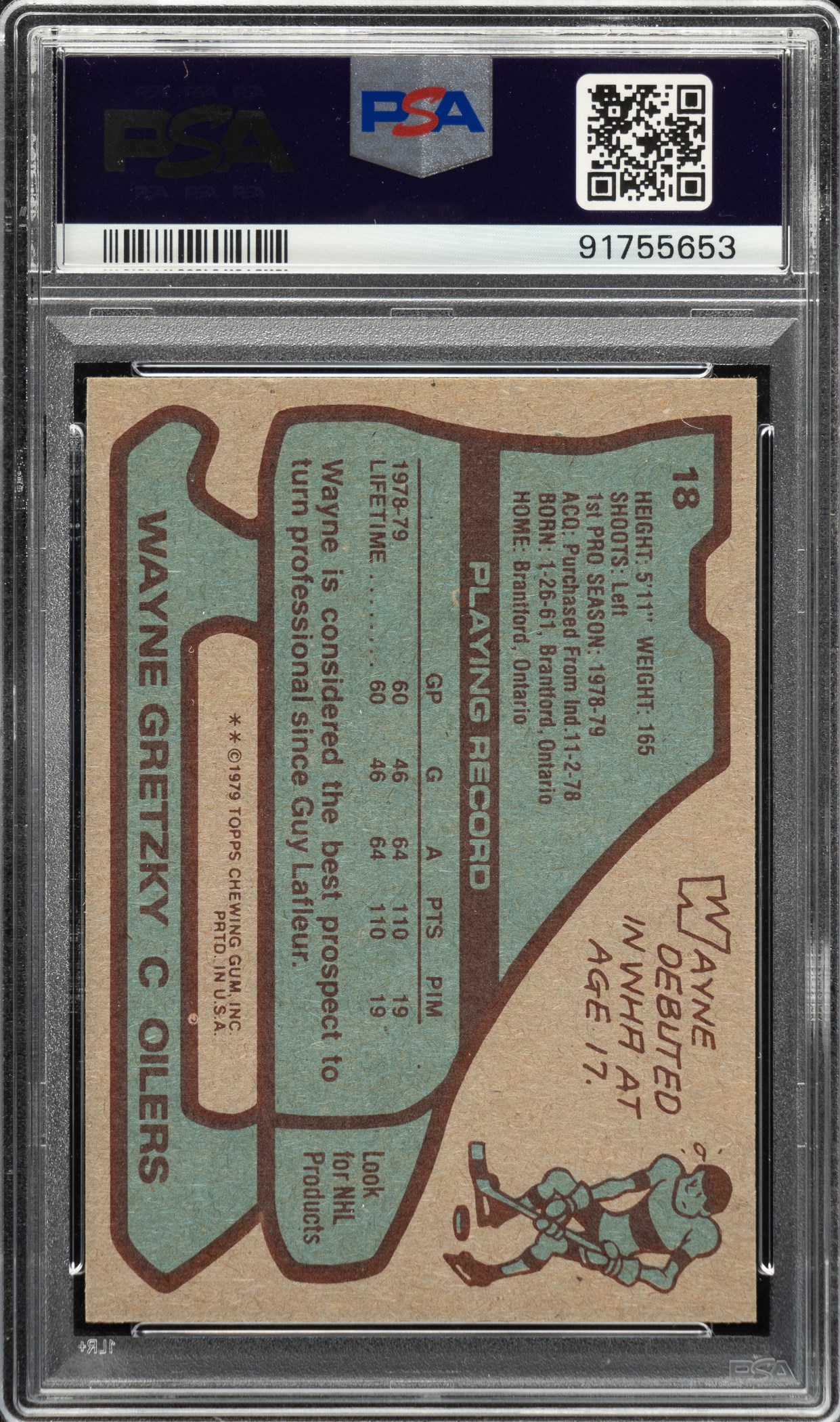 1979-1980 Topps Hockey #18 Wayne Gretzky Rookie PSA NM-MT 8