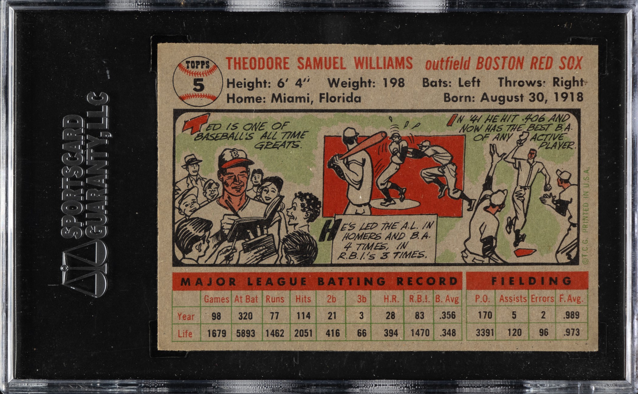 1956 Topps #5 Ted Williams Gray Back SGC NM/MT 88