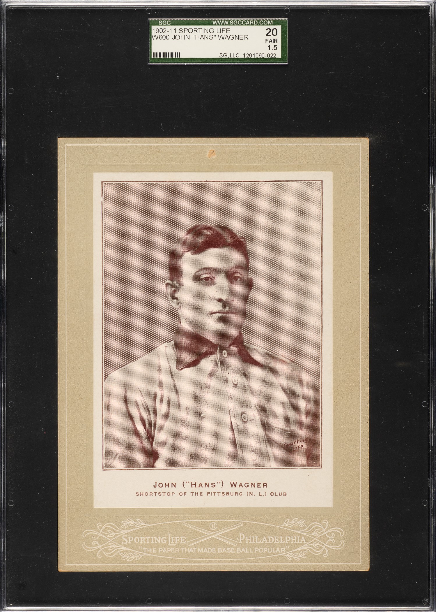 1902-1911 W600 Sporting Life Cabinet Honus Wagner (Uniform - Type 4 Mount) SGC FAIR 20