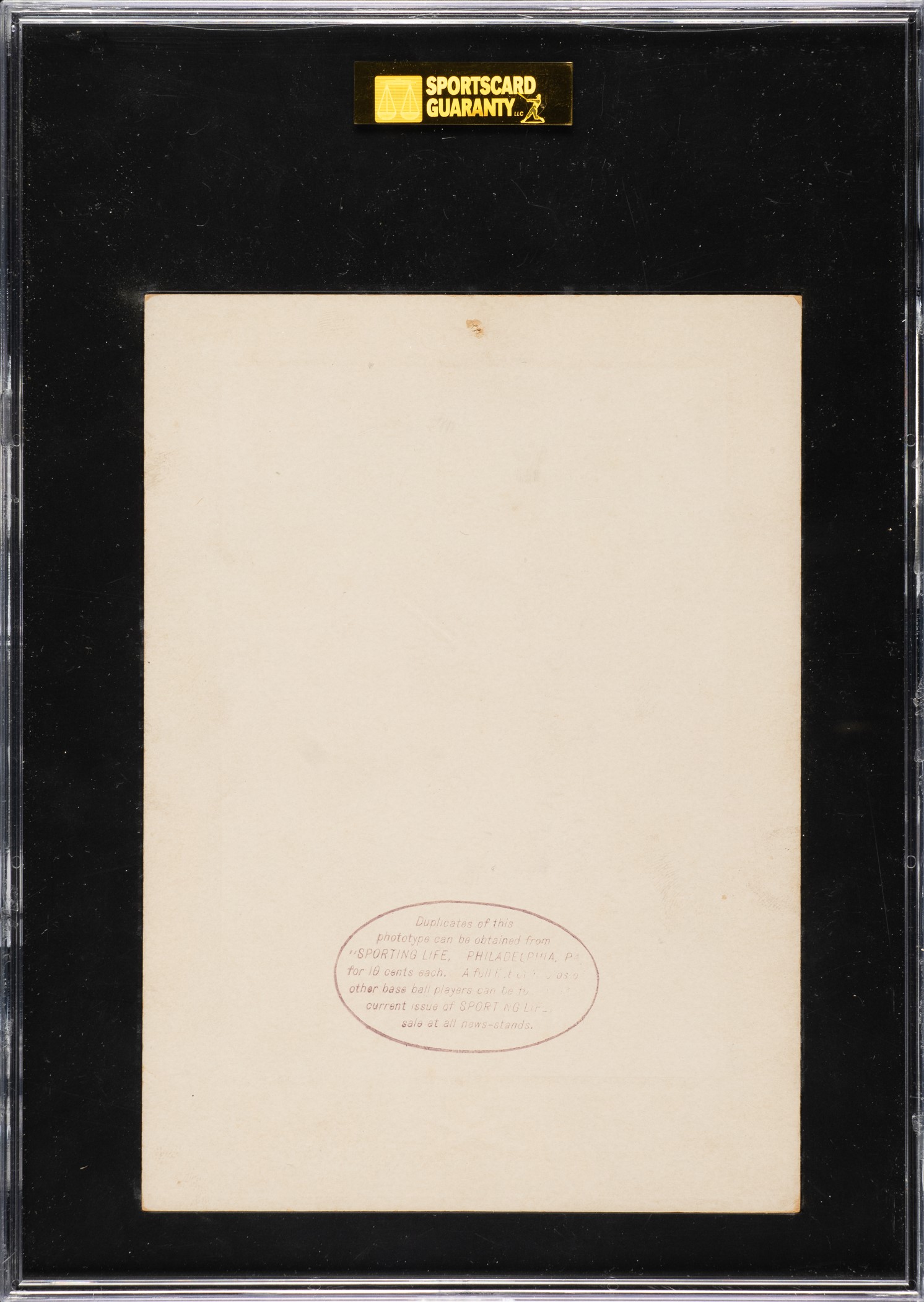 Presented is a rarely offered W600 Sporting Life cabinet of legendary Hall of Famer Honus Wagner. This is a spectacular example of one of the most impressive of all Wagner cards. W600 Sporting Life cabinet cards have always been held in high esteem by advanced collectors and are universally recognized as among the most substantial, highest-quality baseball card sets ever issued. Two poses of Wagner were issued in W600: in uniform and in street clothes. The offered in-uniform pose is a particularly noteworthy card as it features the same pose as the famous T206 Wagner. Wagner's distinctive image is virtually flawless on the offered example with outstanding photo contrast. Graded FAIR 20 by SGC due to a tack hole at the top. It is otherwise in Vg-Ex condition. This is an exceptionally attractive example of one of Honus Wagner's rarest and most striking cards, and one that would be a significant addition to any serious Hall of Fame or prewar card collection. Opening Bid $10,000.