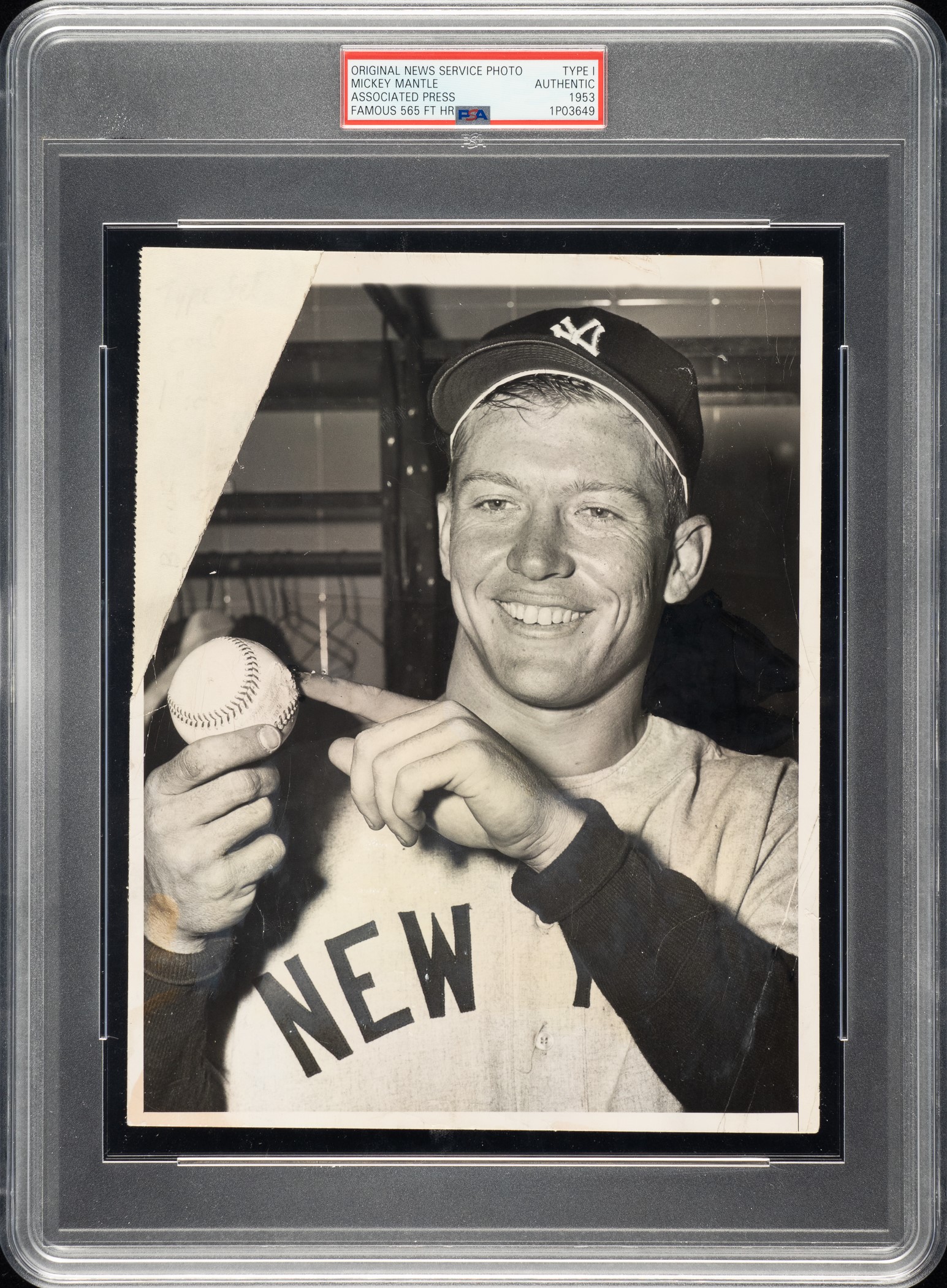 1953 Mickey Mantle Original Associated Press Photograph PSA/DNA Type I - With Famous 565 Ft. Home Run Ball!