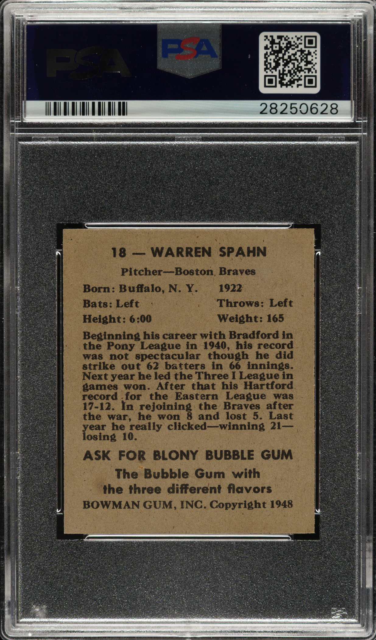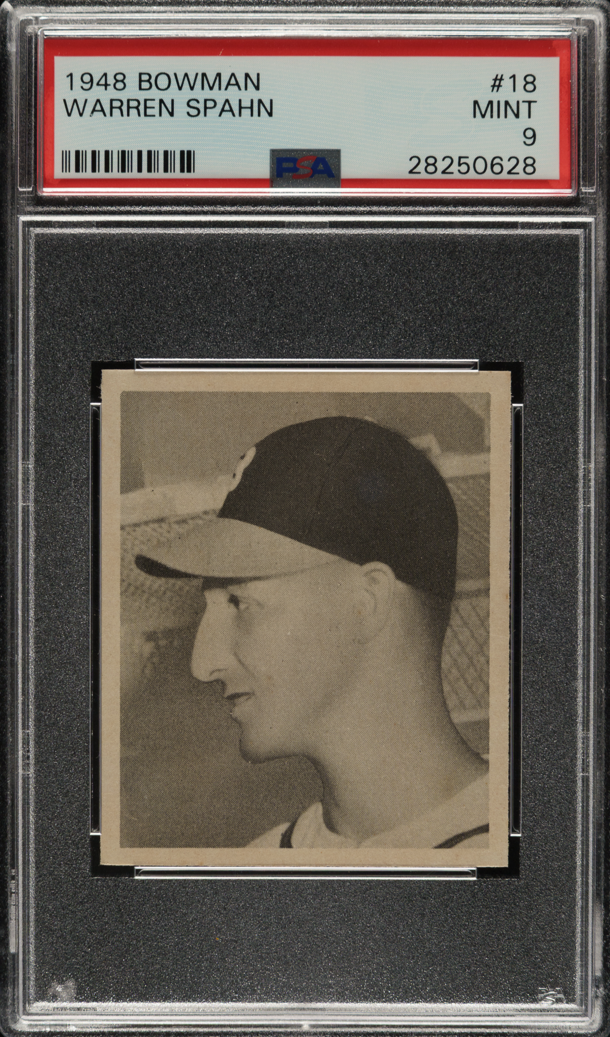 1948 Bowman #18 Warren Spahn Rookie PSA MINT 9 - Highest Graded!