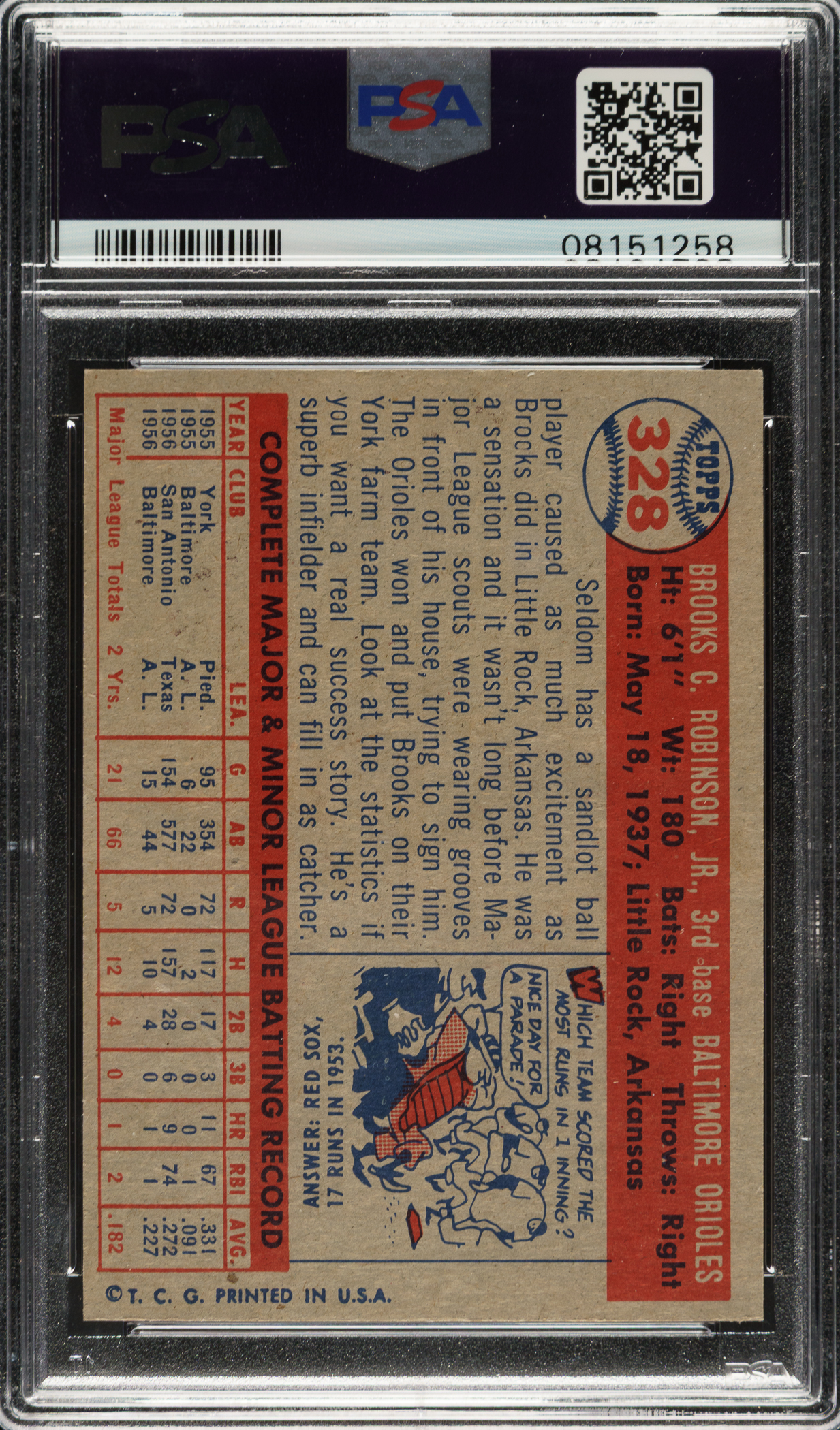 1957 Topps #328 Brooks Robinson Rookie PSA MINT 9