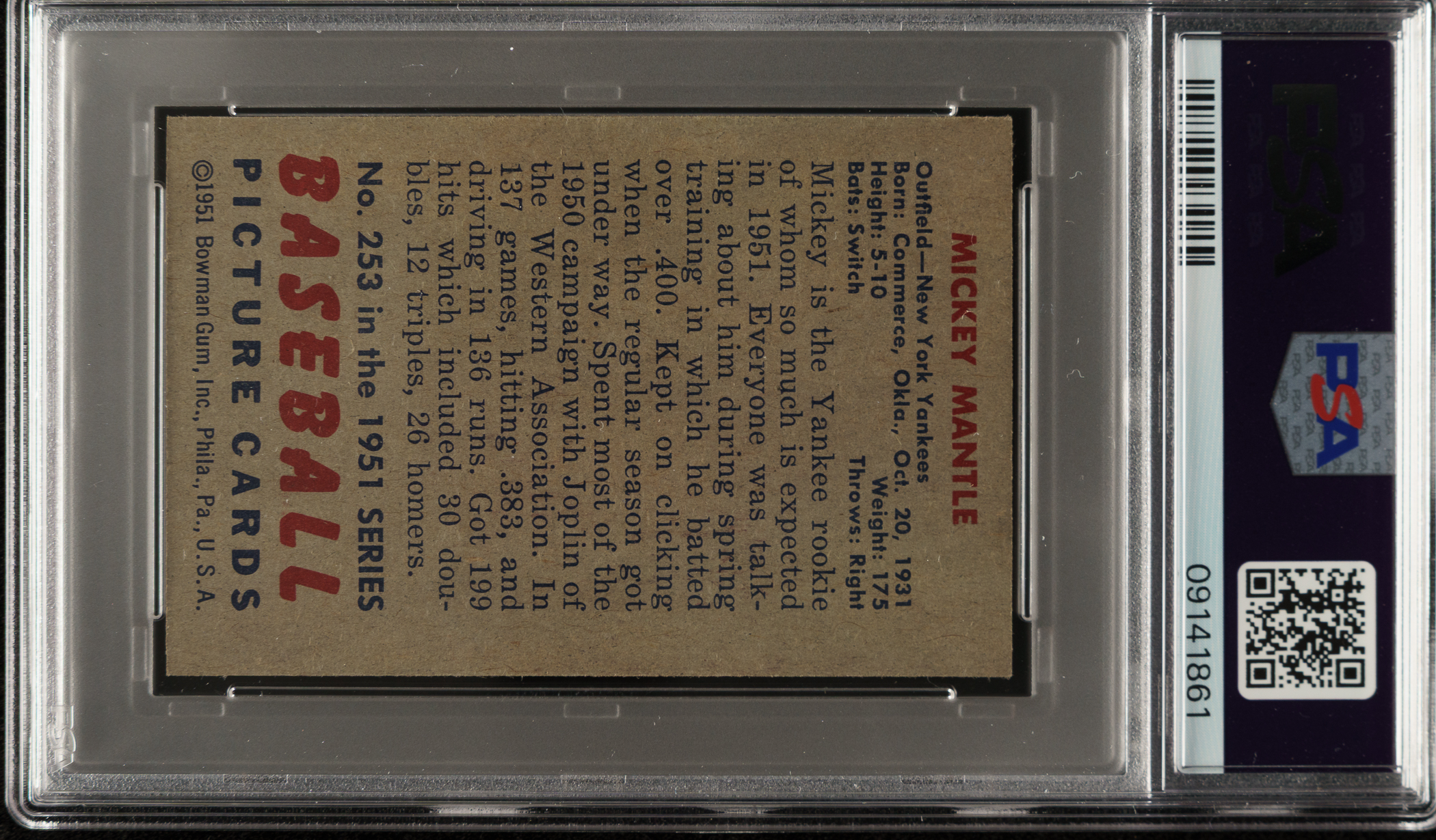 1951 Bowman #253 Mickey Mantle Rookie PSA NM 7