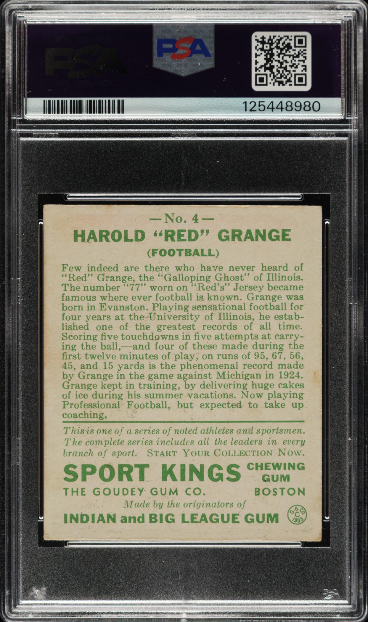 1933 R338 Sport Kings #4 Red Grange PSA GOOD 2