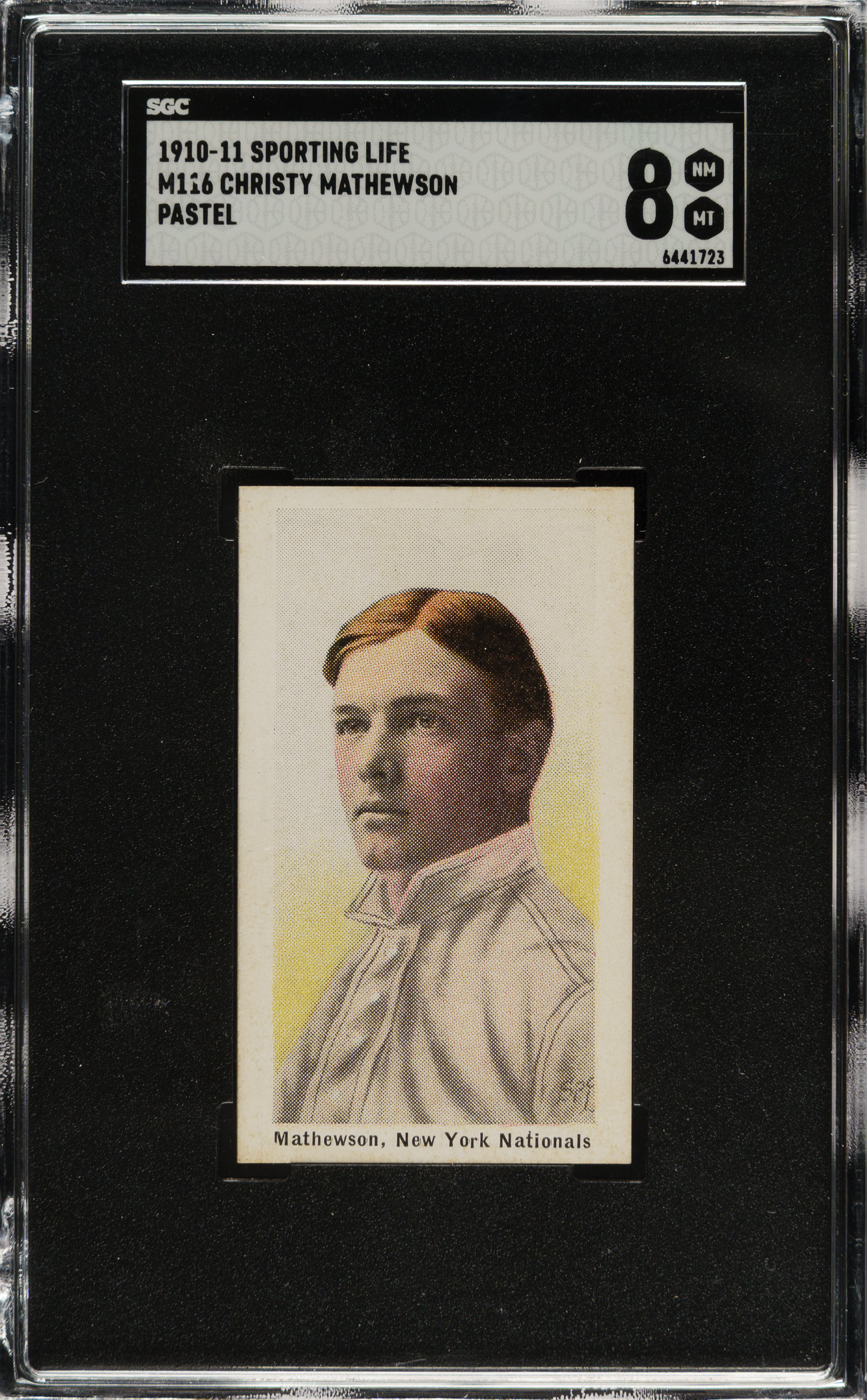 1910-1911 M116 Sporting Life Christy Mathewson Pastel Background SGC NM/MT 8