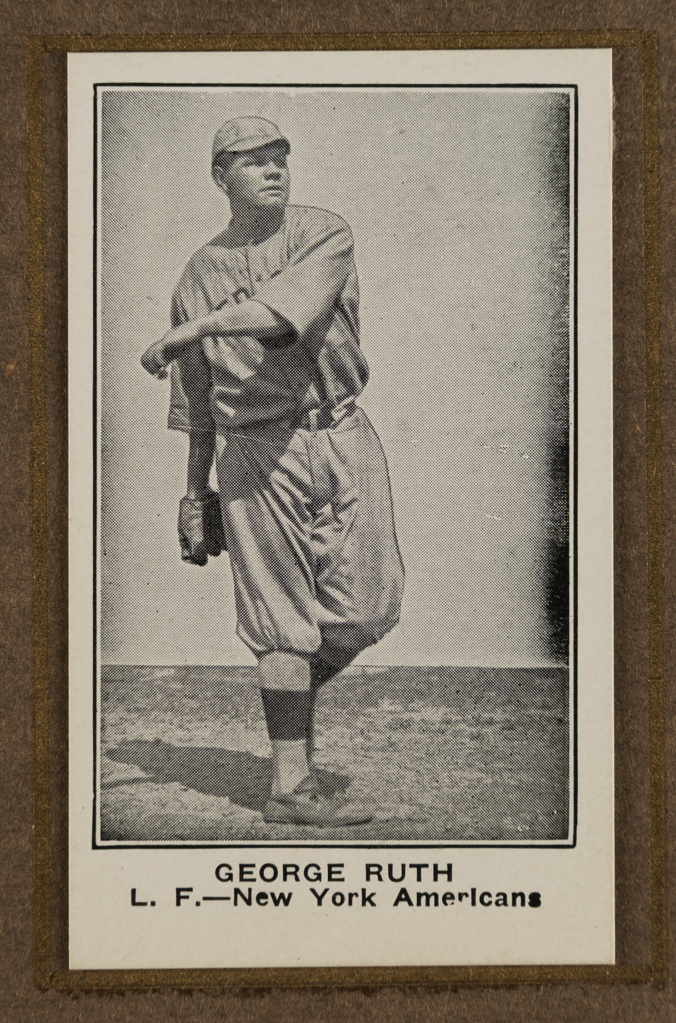 Once home, he began to look more closely at the cards, wondering if they might have been produced by American Caramel, one of the early card manufacturers he was familiar with. Hoping to confirm his suspicion, he gently lifted one of the cards only to find the back completely blank, leaving him a bit disappointed, now figuring the cards weren't worth anything. As he continued flipping through the album, that sense of letdown quickly faded when he stumbled upon Babe Ruth, clad in his Boston uniform in a full-length throwing pose. At this point, our consignor realized he had something very special.