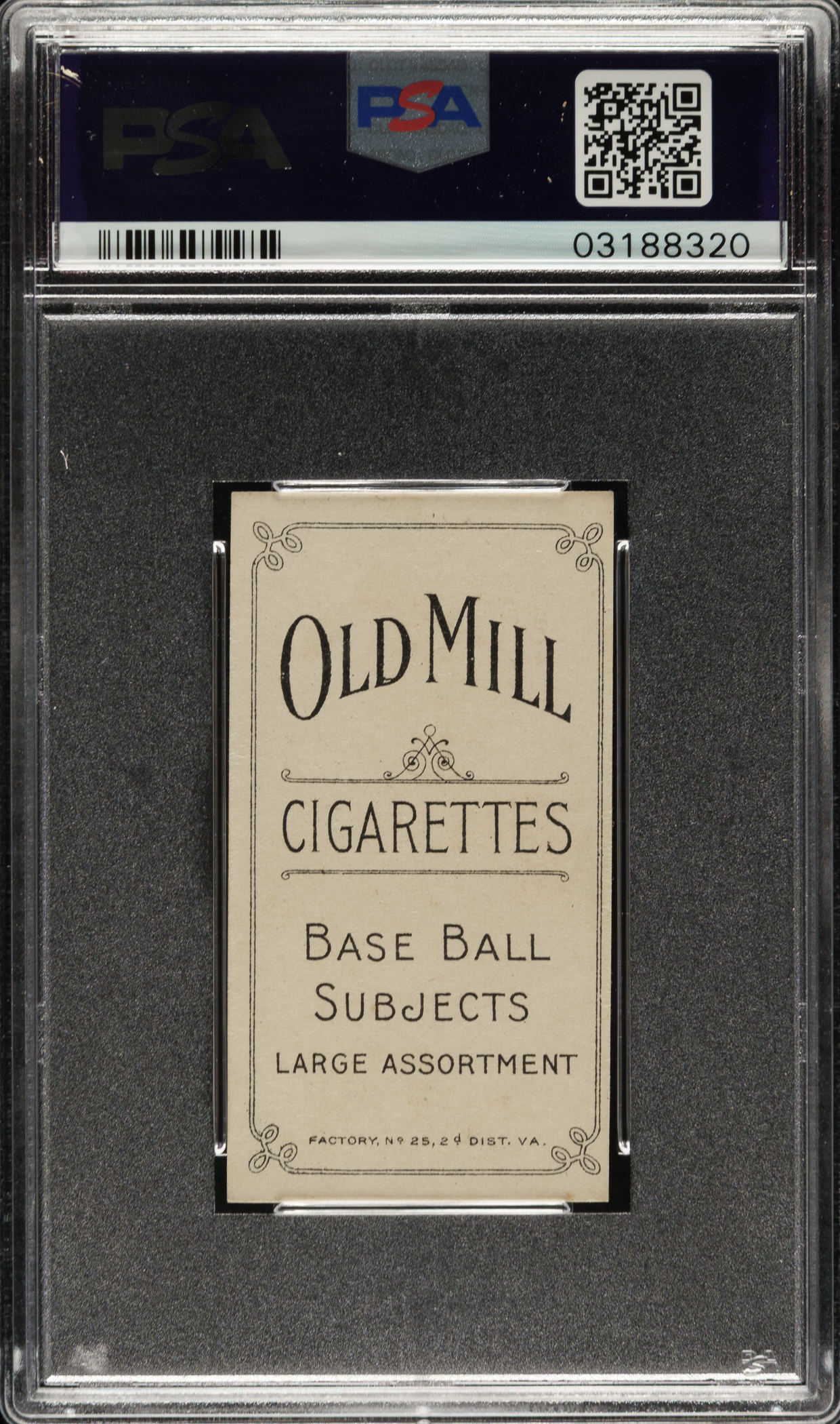 Graded NM-MT 8 by PSA. This is a stunning high-grade example of one of the three classic poses of Christy Mathewson from the T206 White Borders series. It is further distinguished by its Old Mill advertising back, making it the only example with this back graded at this level by PSA with none higher! The T206 Christy Mathewson white cap pose is one of the most popular of all T206s, and one of the most highly regarded of all Mathewson cards. This example has a particularly bold image, extremely vibrant colors, and outstanding centering. This is very sharp-looking card, extremely clean both front and back, with four strong corners. Boldly printed reverse. This a tremendous high-grade example of one of the key Hall of Famers from the legendary T206 set, and it would be at home in any world-class T206, Christy Mathewson, or Hall of Fame collection.