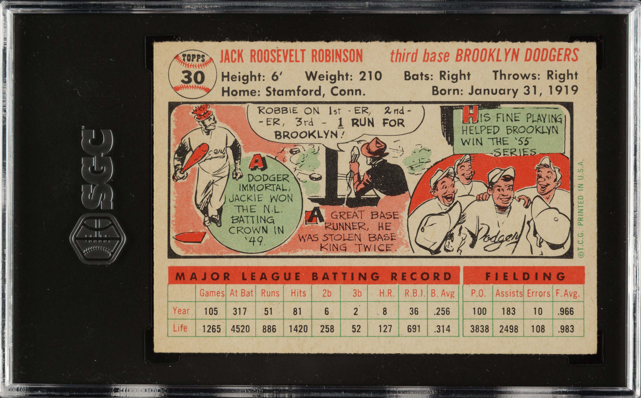 1956 Topps #30 Jackie Robinson White Back SGC VG 3