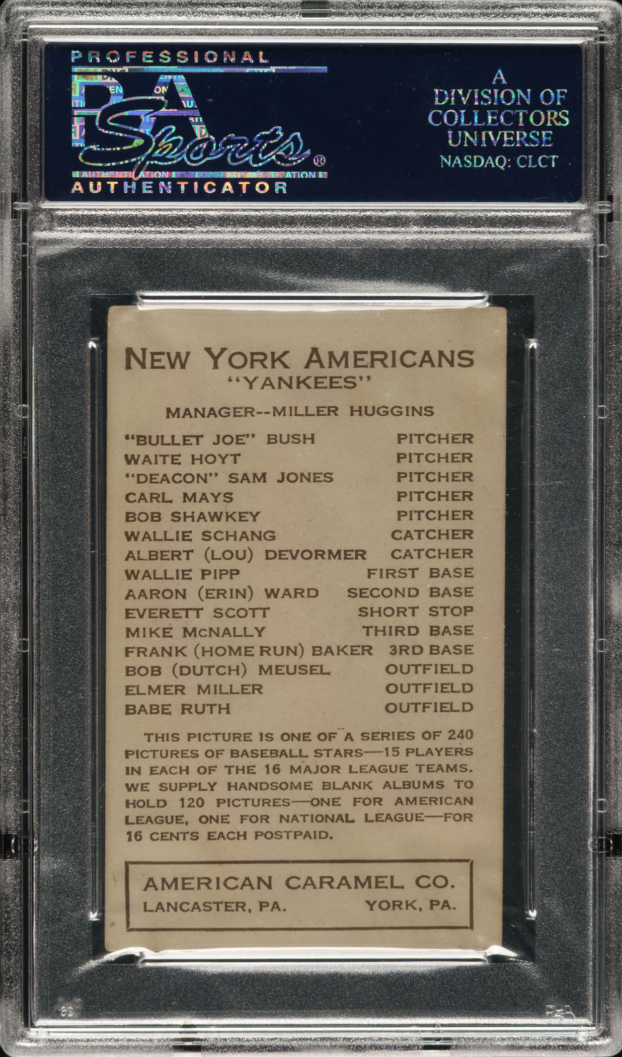 1922 E120 American Caramel Babe Ruth PSA VG-EX 4