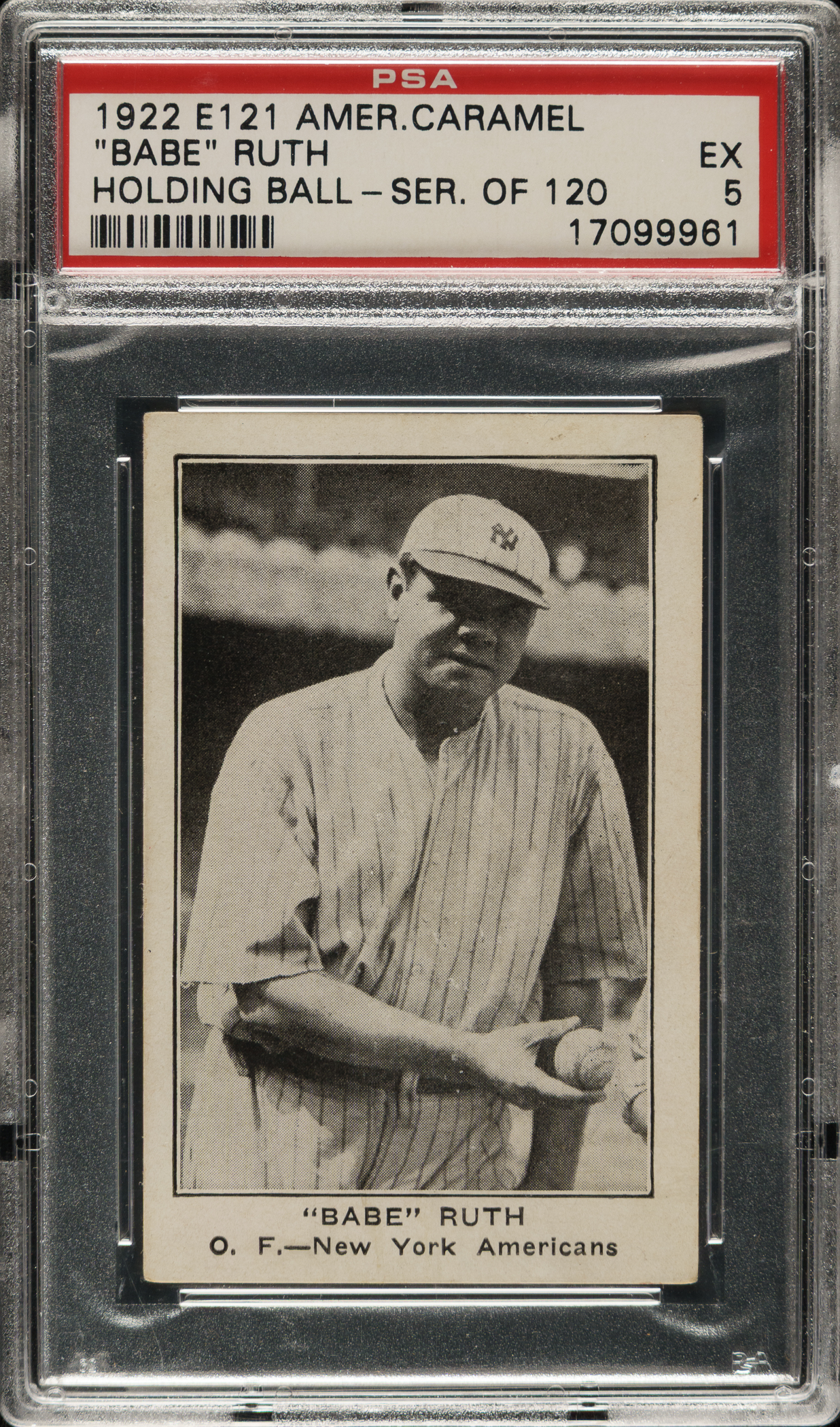1922 E121 American Caramel (Series of 120) "Babe" Ruth - Holding Ball PSA EX 5