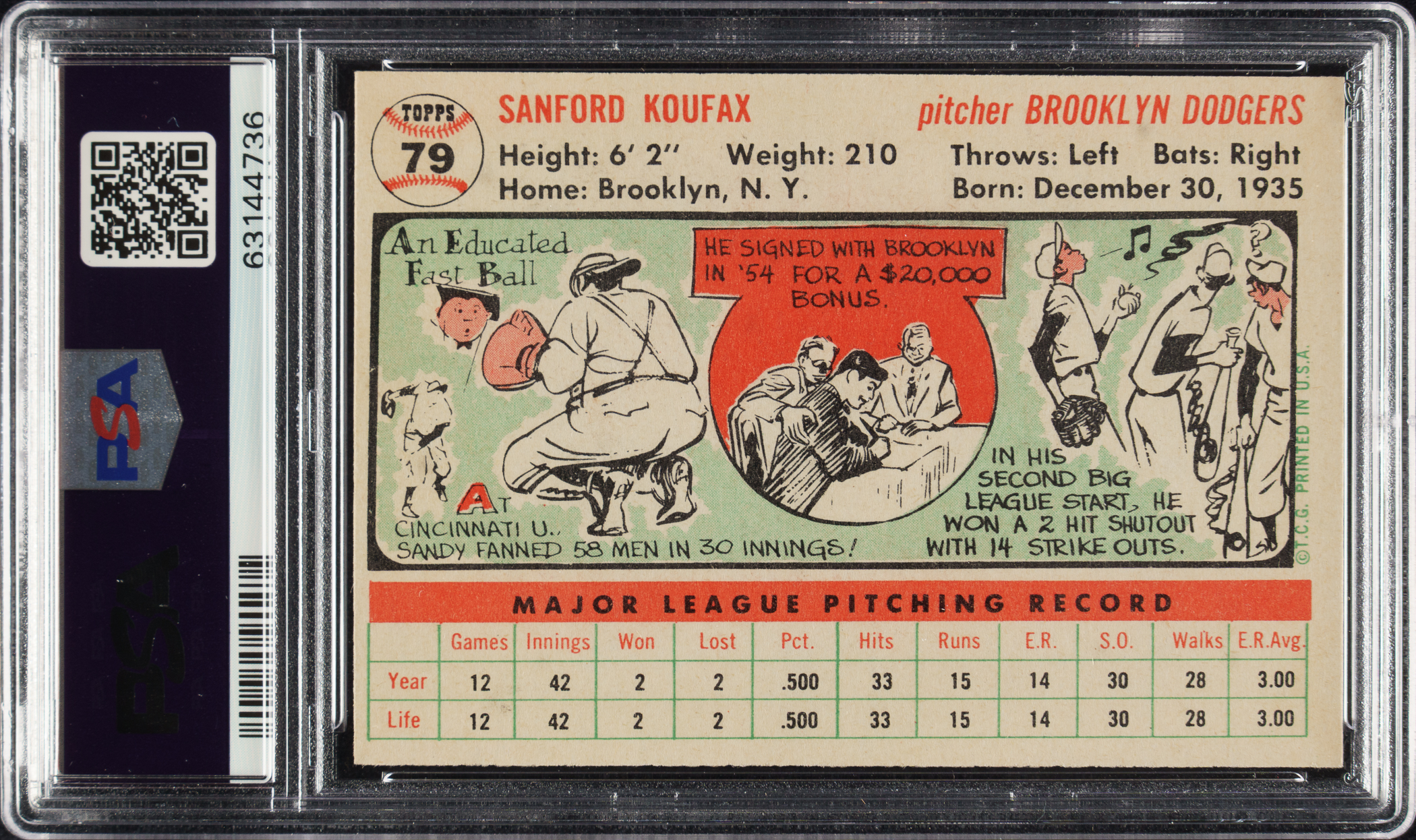 1956 Topps #79 Sandy Koufax White Back PSA MINT 9