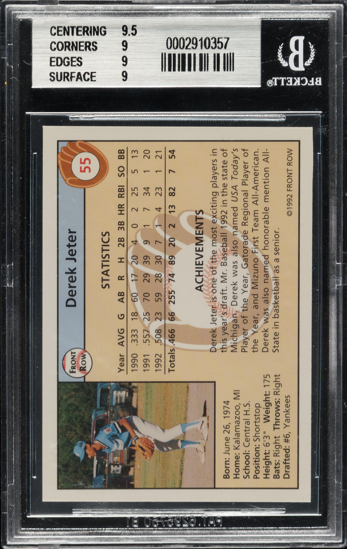 1992 Front Row #55 Derek Jeter Rookie Silver BGS MINT 9