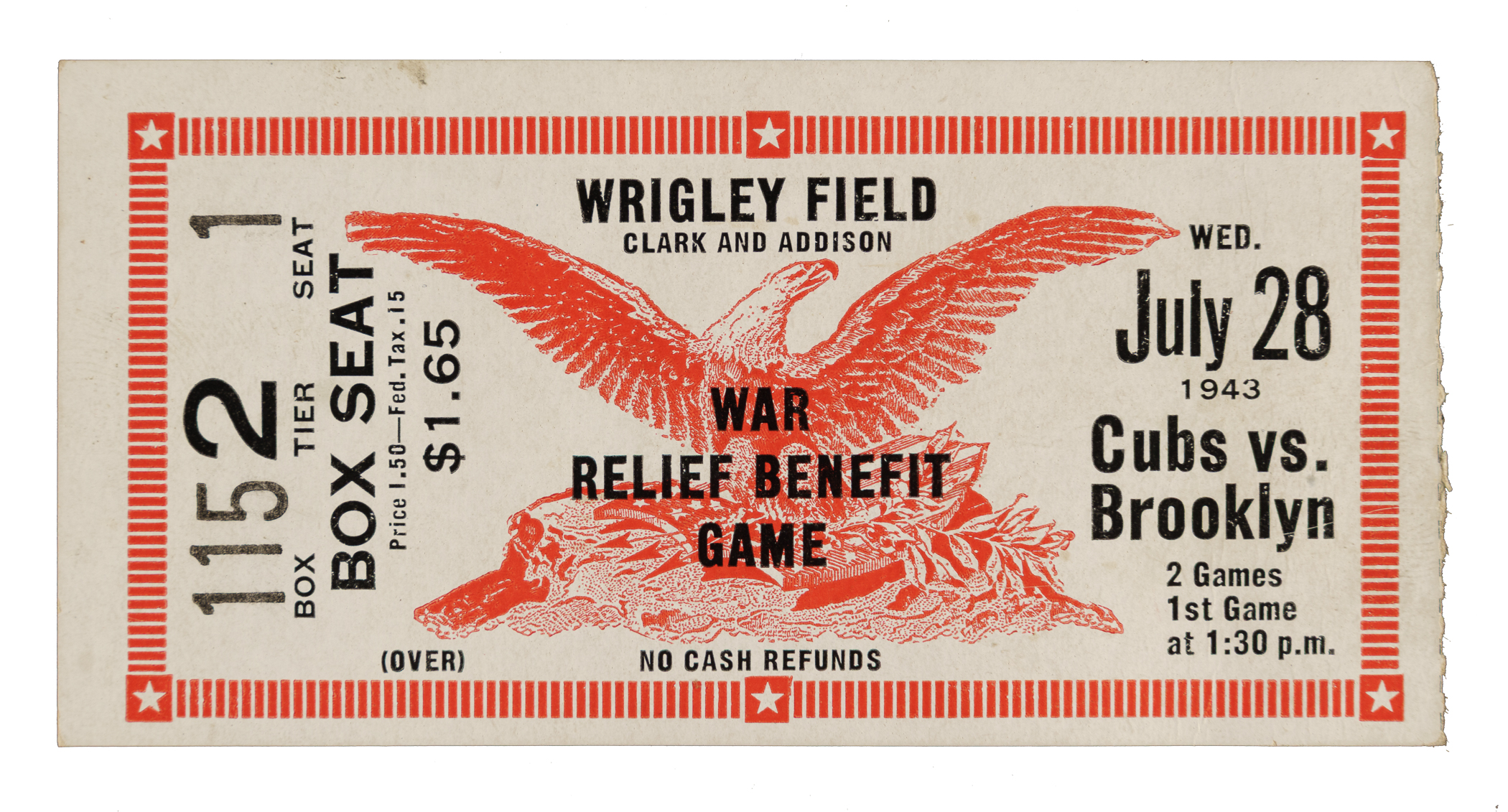 July 28, 1943 Chicago Cubs (vs. Brooklyn Dodgers) Ticket Stub