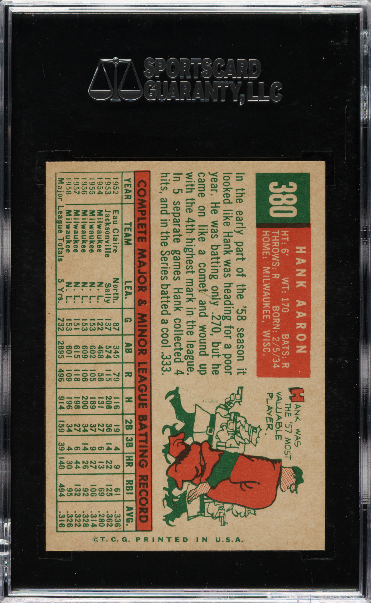 1959 Topps #380 Hank Aaron SGC MINT 9 (MBA Gold Diamond) - 1 of 2 - Highest Graded!