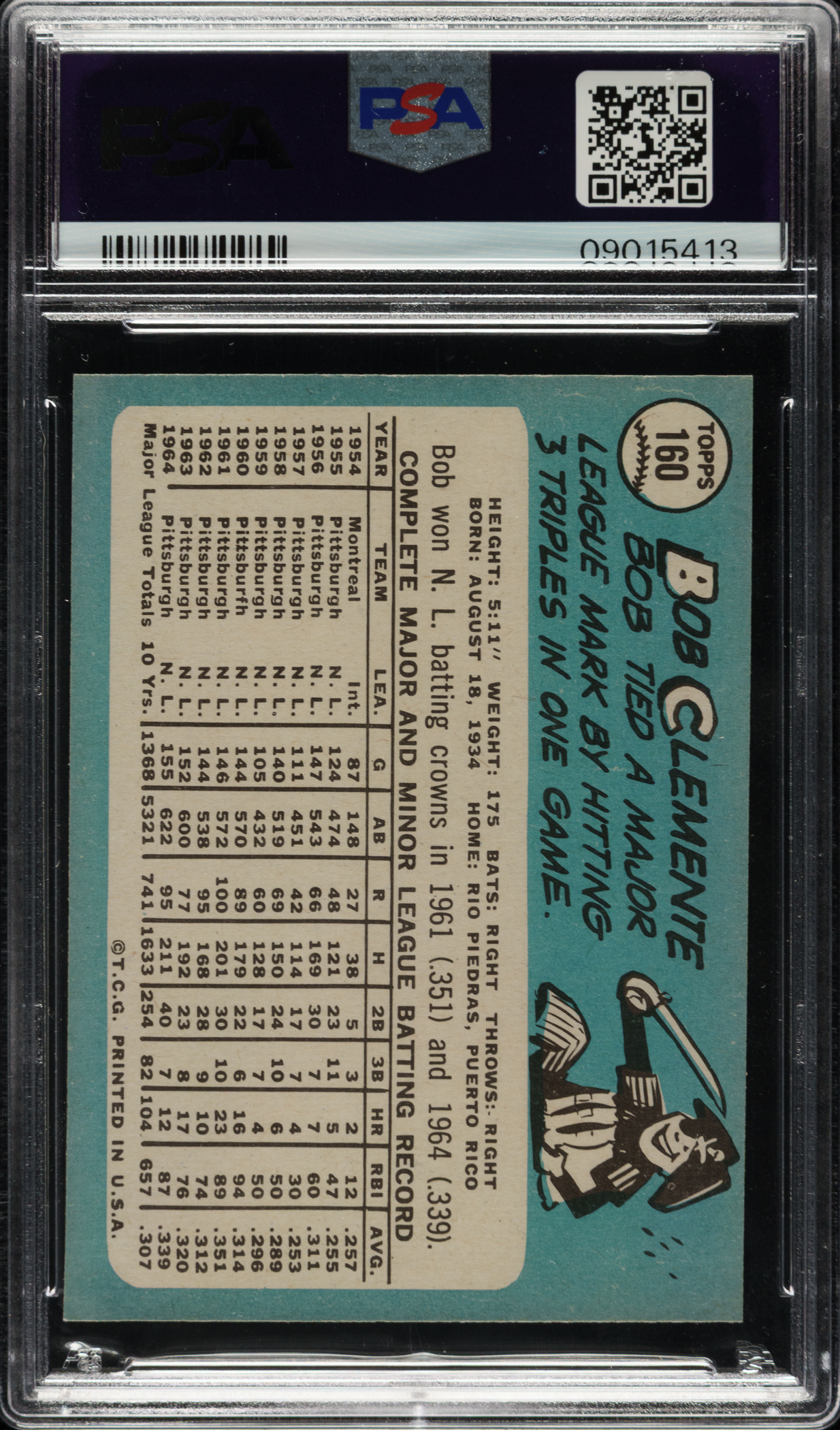 1965 Topps #160 Roberto Clemente PSA MINT 9 - Highest Graded!