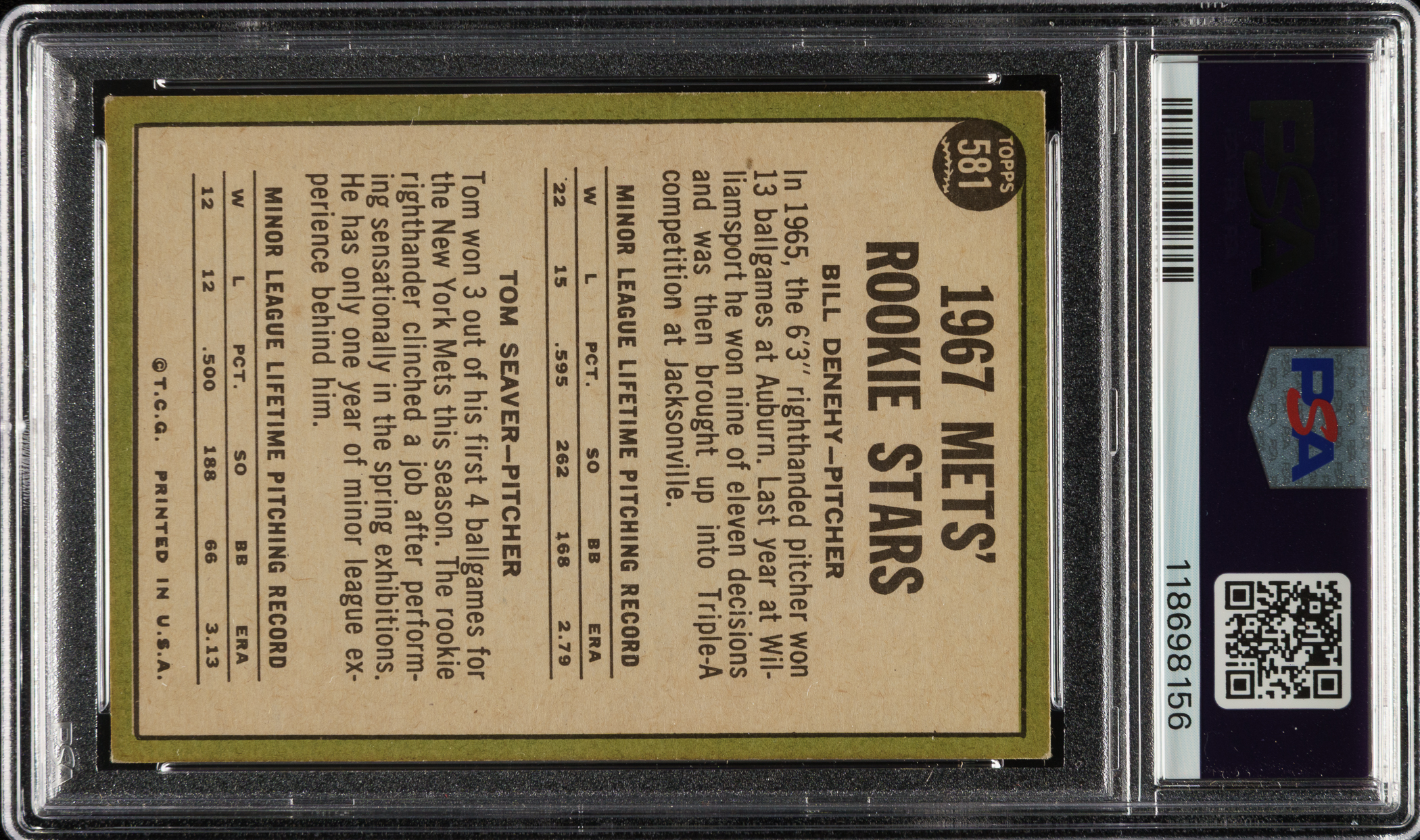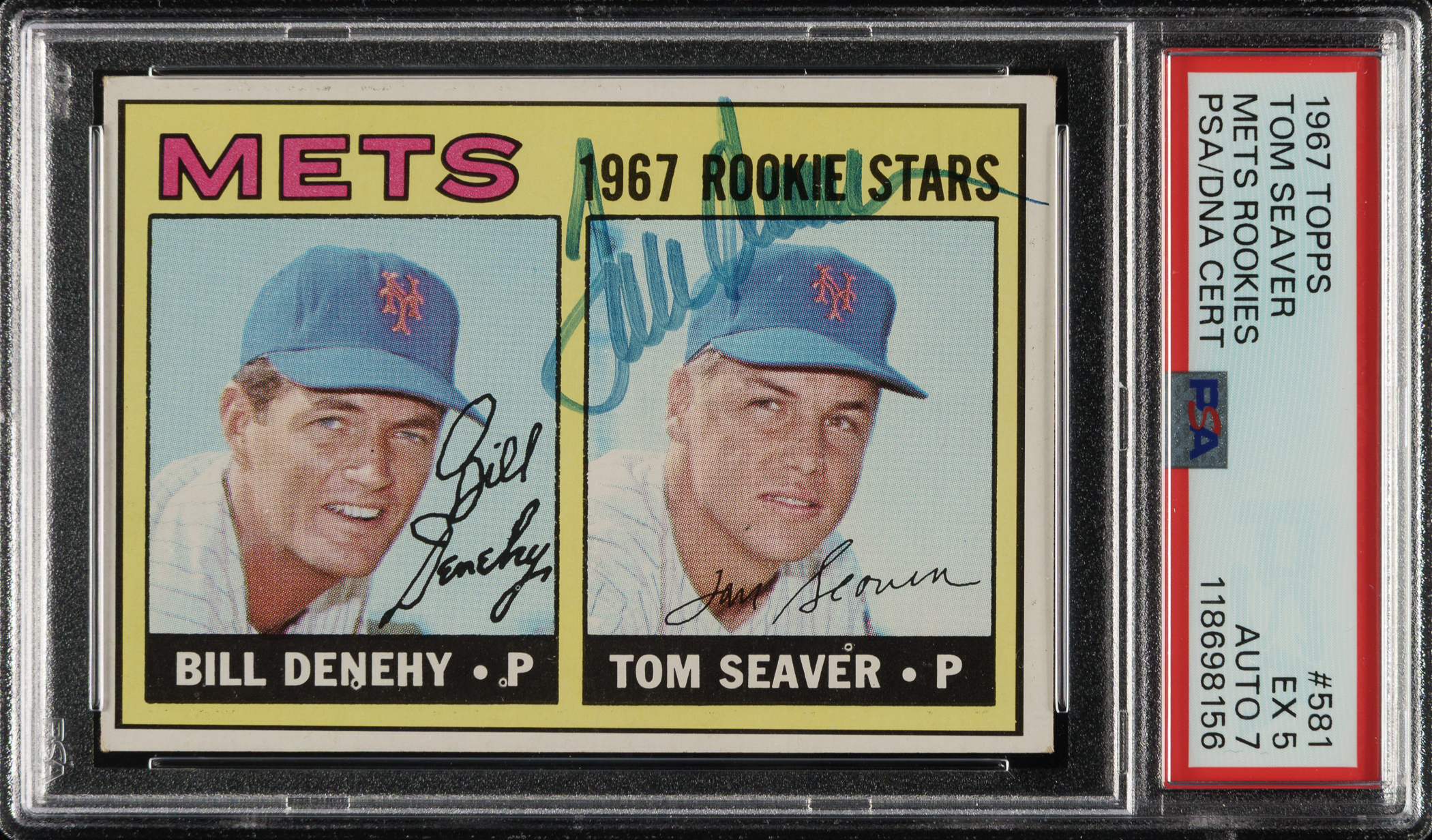 Signed 1967 Topps #581 Tom Seaver Rookie PSA EX 5 with NM 7 Signature