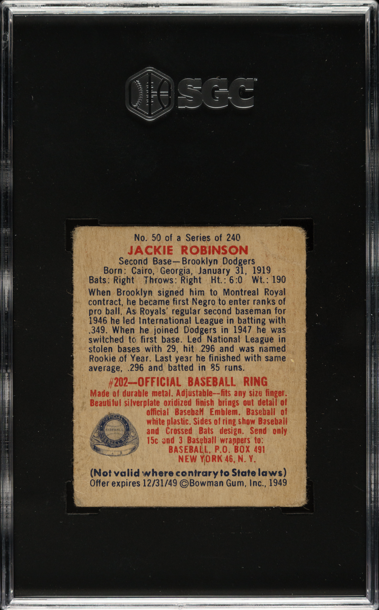 1949 Bowman #50 Jackie Robinson SGC GOOD 2