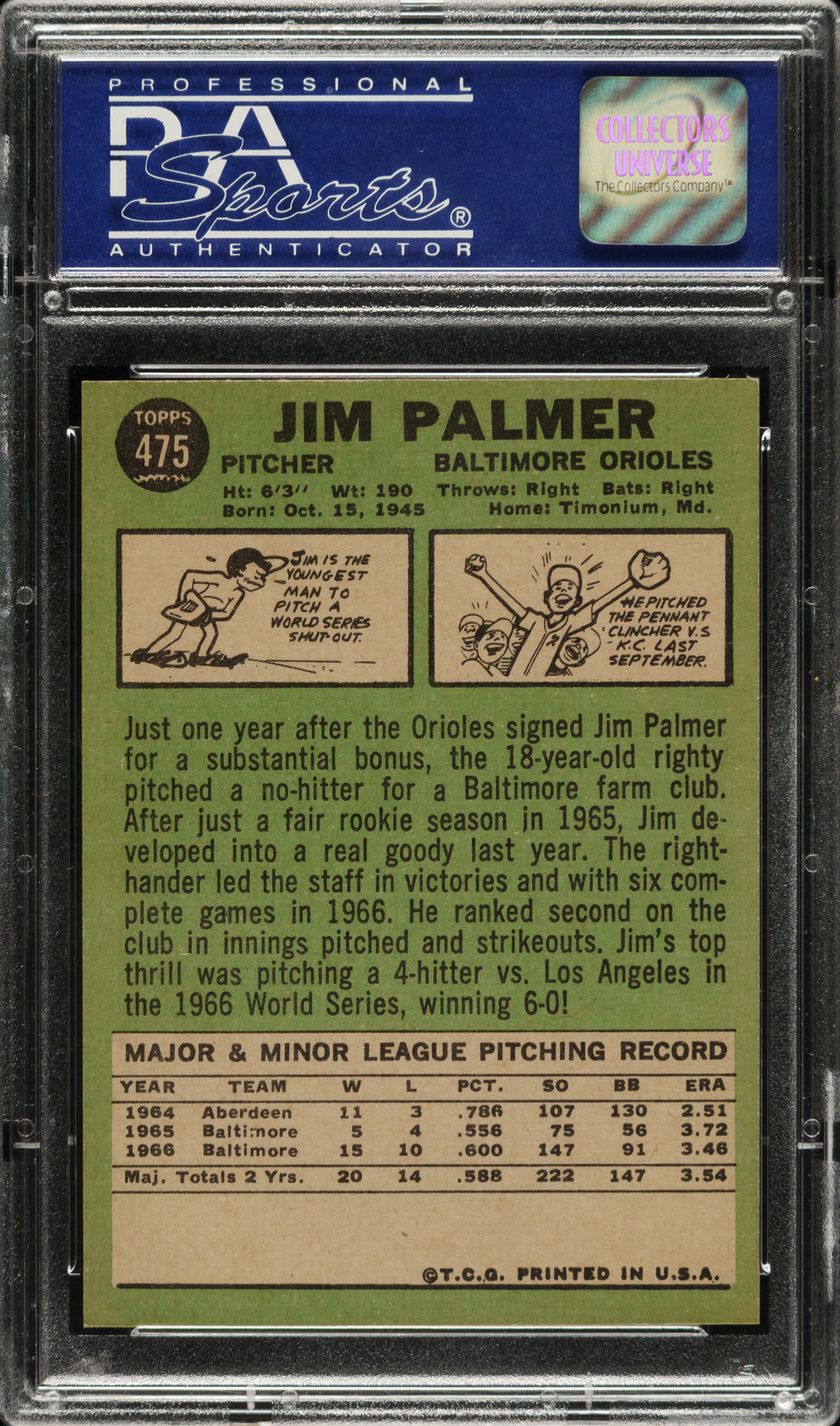1967 Topps #475 Jim Palmer PSA NM-MT 8
