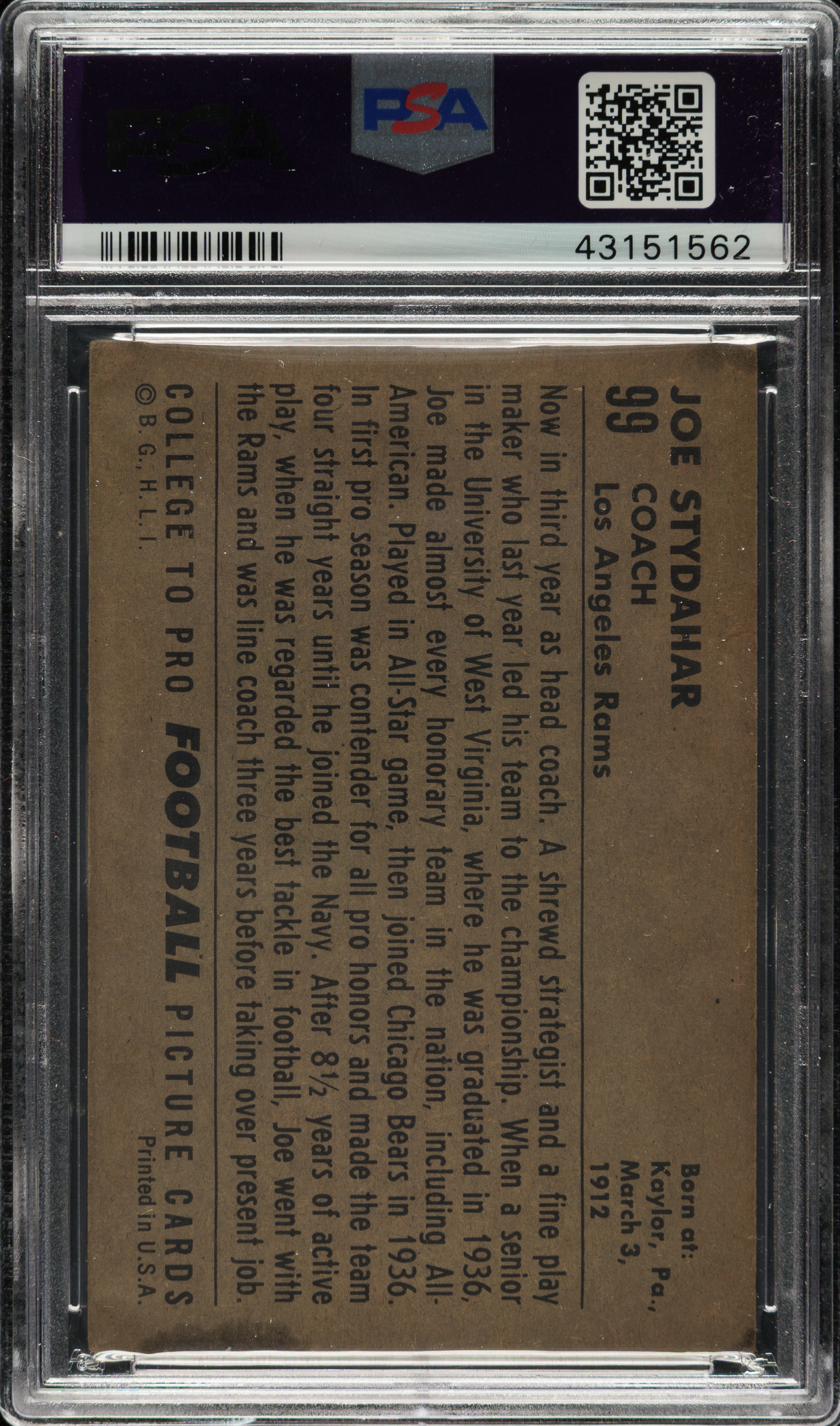 Graded VG-EX+ 4.5 by PSA. Los Angeles Rams football Hall of Famer Joe Stydahar.