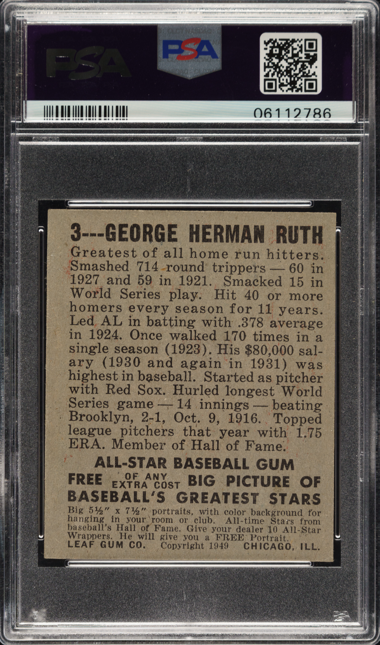 1948-1949 Leaf #3 Babe Ruth PSA NM-MT 8