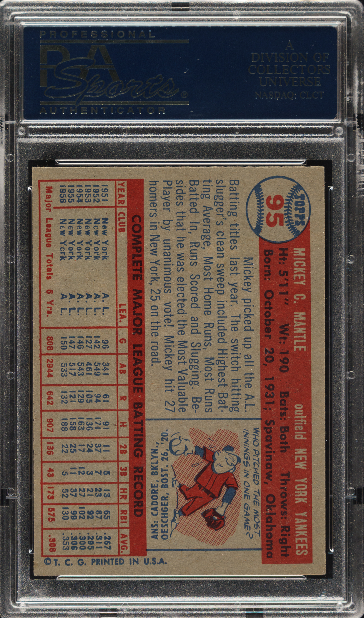 1957 Topps #95 Mickey Mantle PSA NM-MT+ 8.5