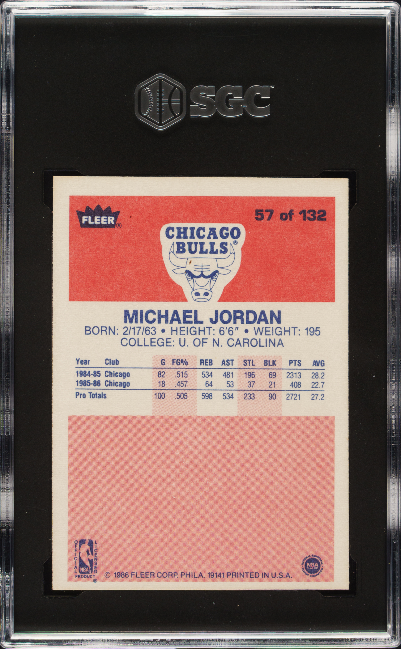 1986-1987 Fleer Basketball #57 Michael Jordan Rookie SGC EX 5