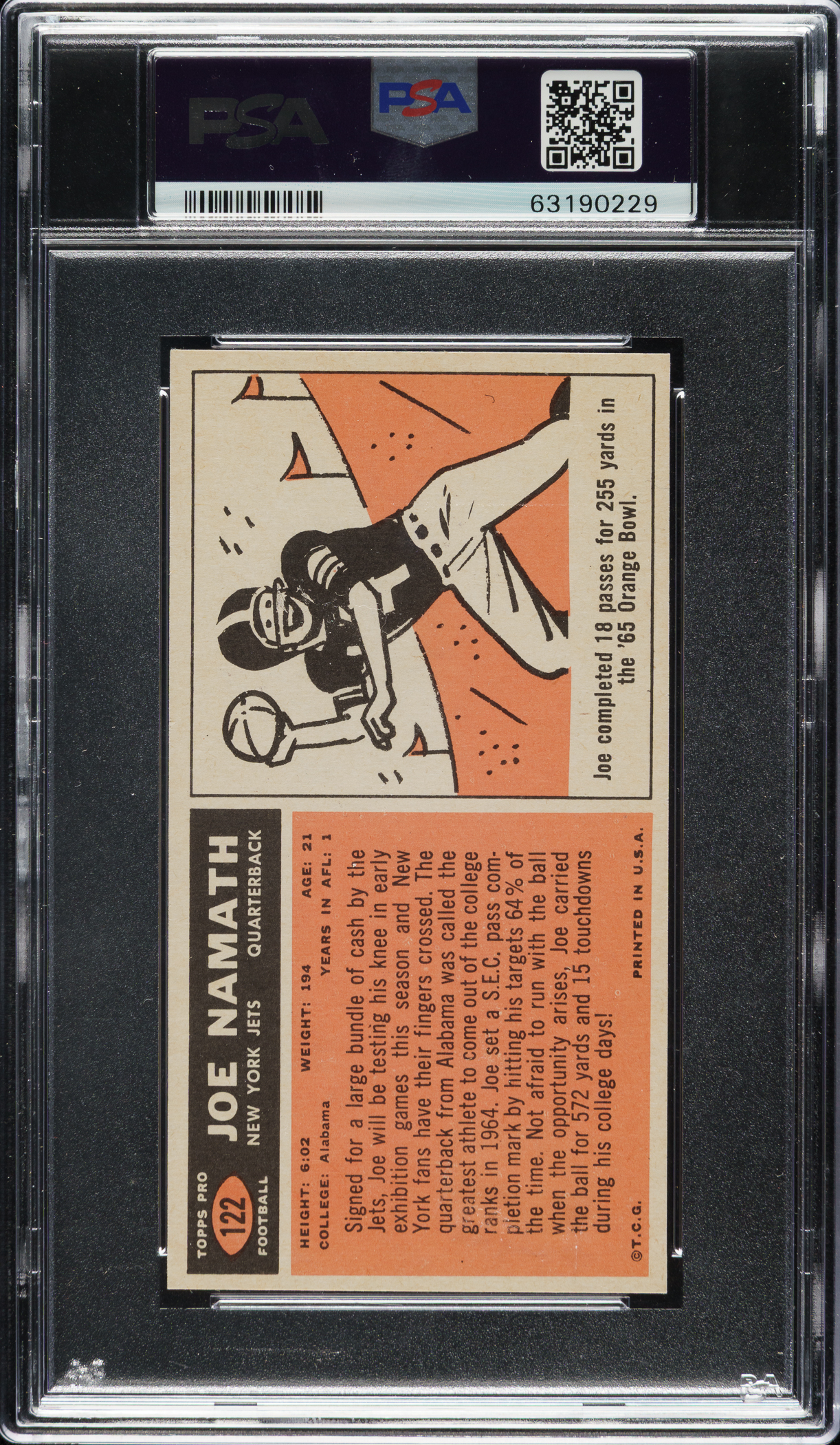 1965 Topps Football #122 Joe Namath Rookie PSA NM+ 7.5