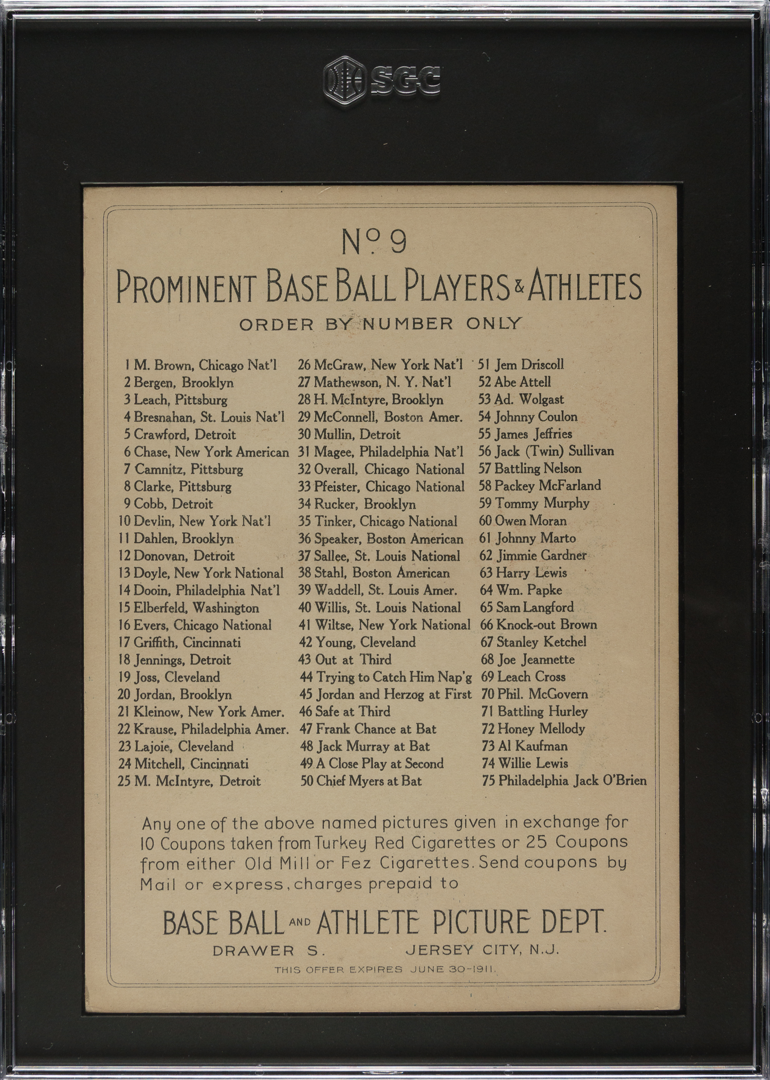 1911 T3 Turkey Red #9 Ty Cobb SGC EX 5 (Ex-Conlon Collection)