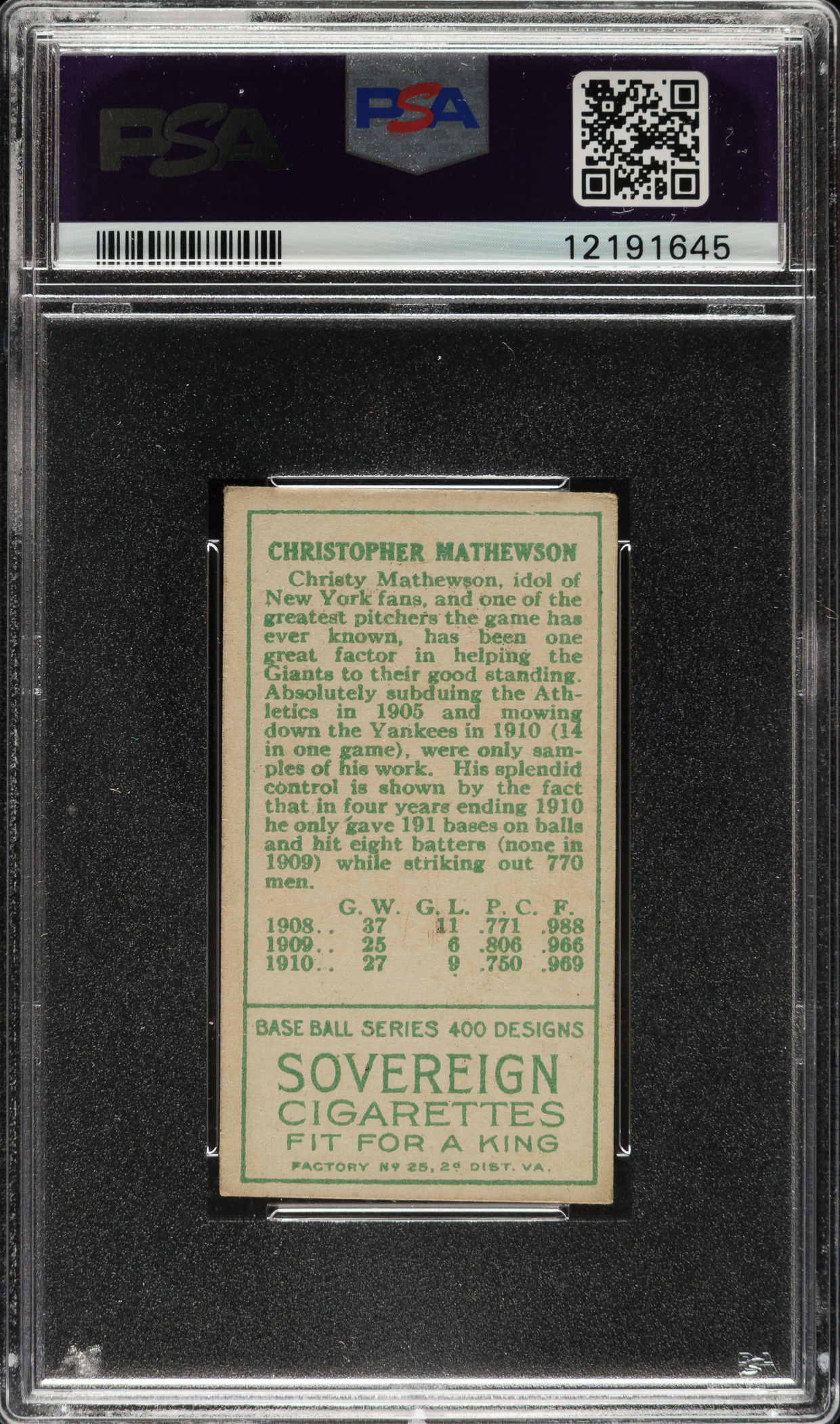 1911 T205 Gold Border Christy Mathewson PSA EX-MT 6 - Sovereign Back