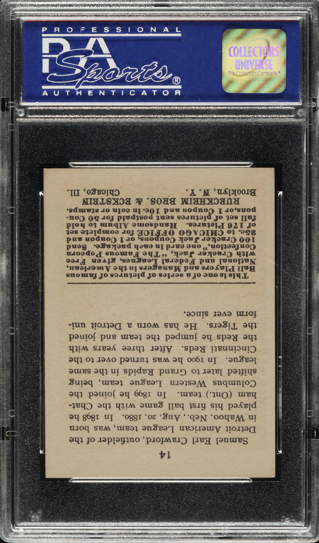1915 E145 Cracker Jack #14 Sam Crawford PSA NM-MT 8