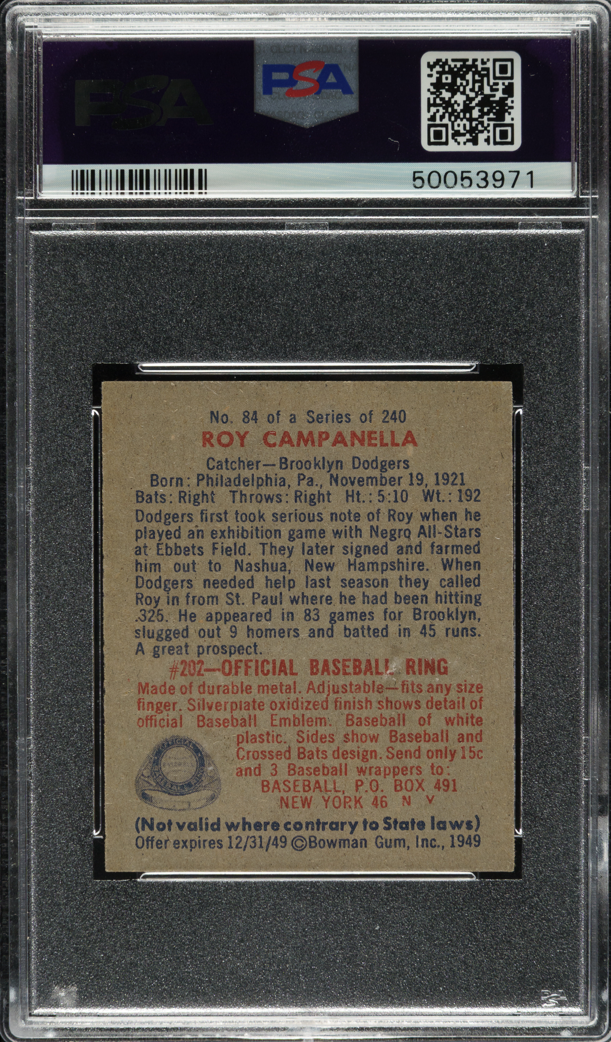 1949 Bowman #84 Roy Campanella Rookie PSA MINT 9