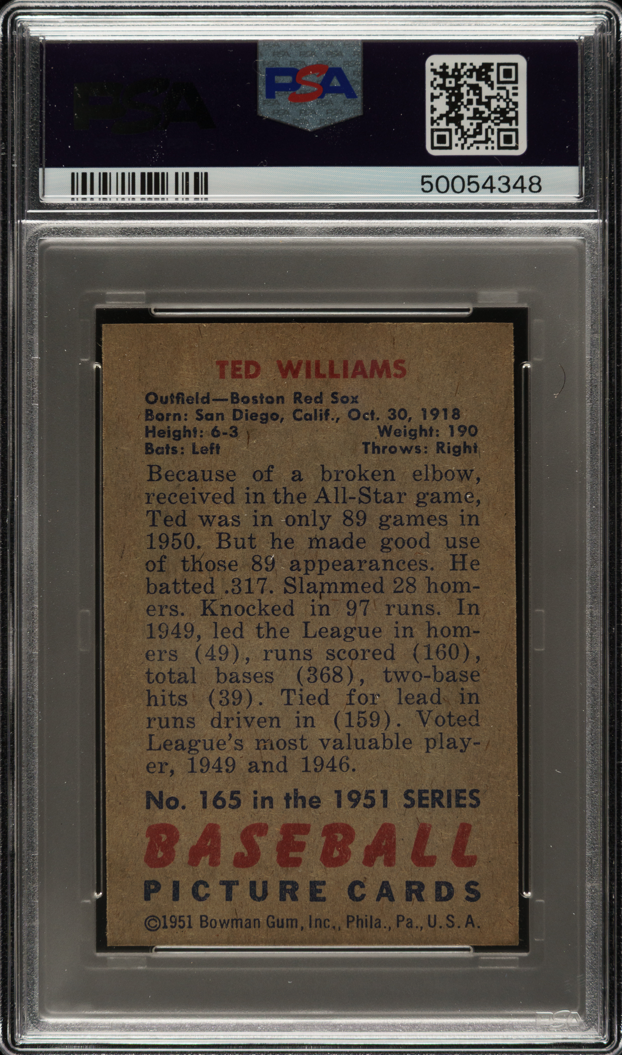 1951 Bowman #165 Ted Williams PSA NM-MT+ 8.5