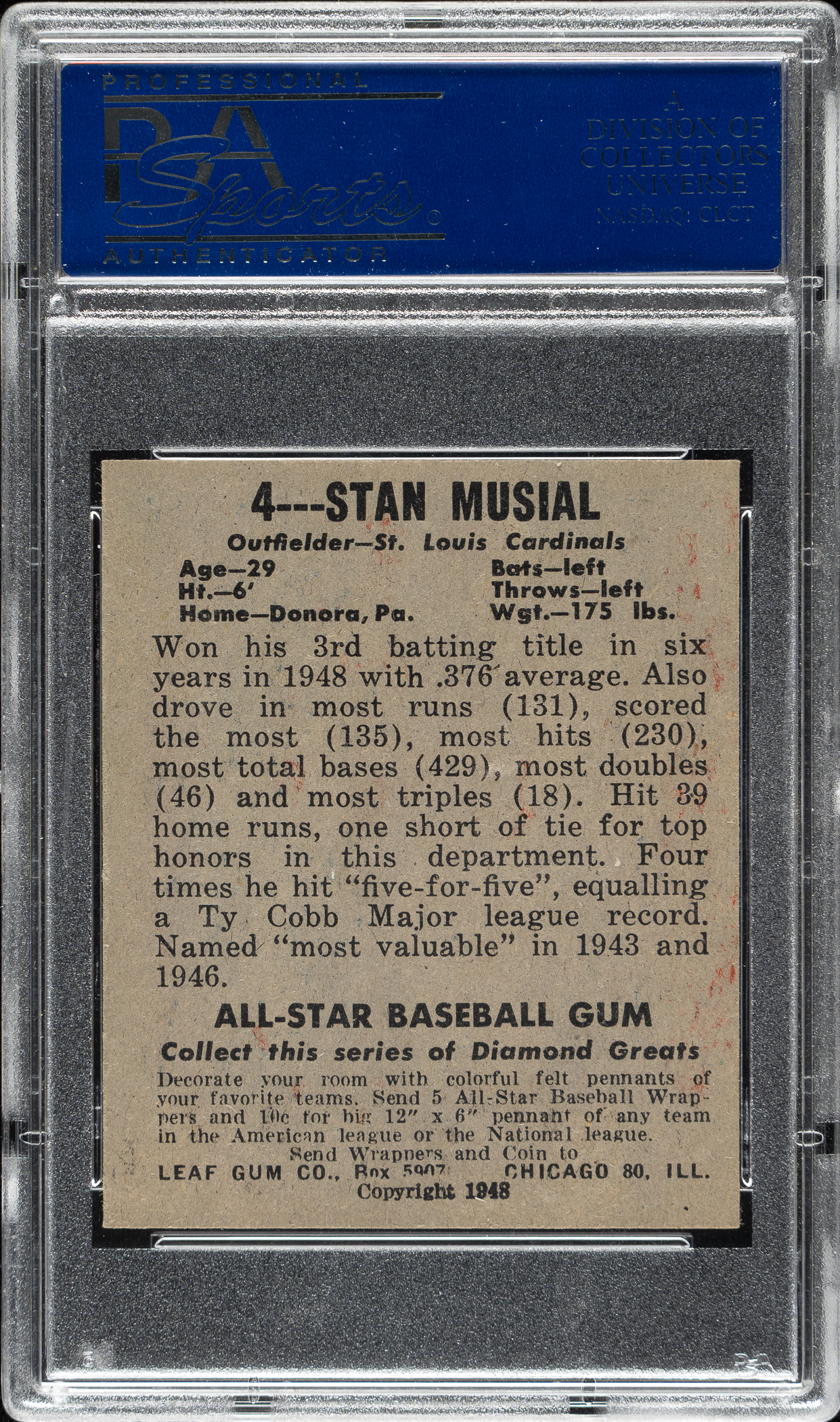 1948-1949 Leaf #4 Stan Musial Rookie PSA NM 7