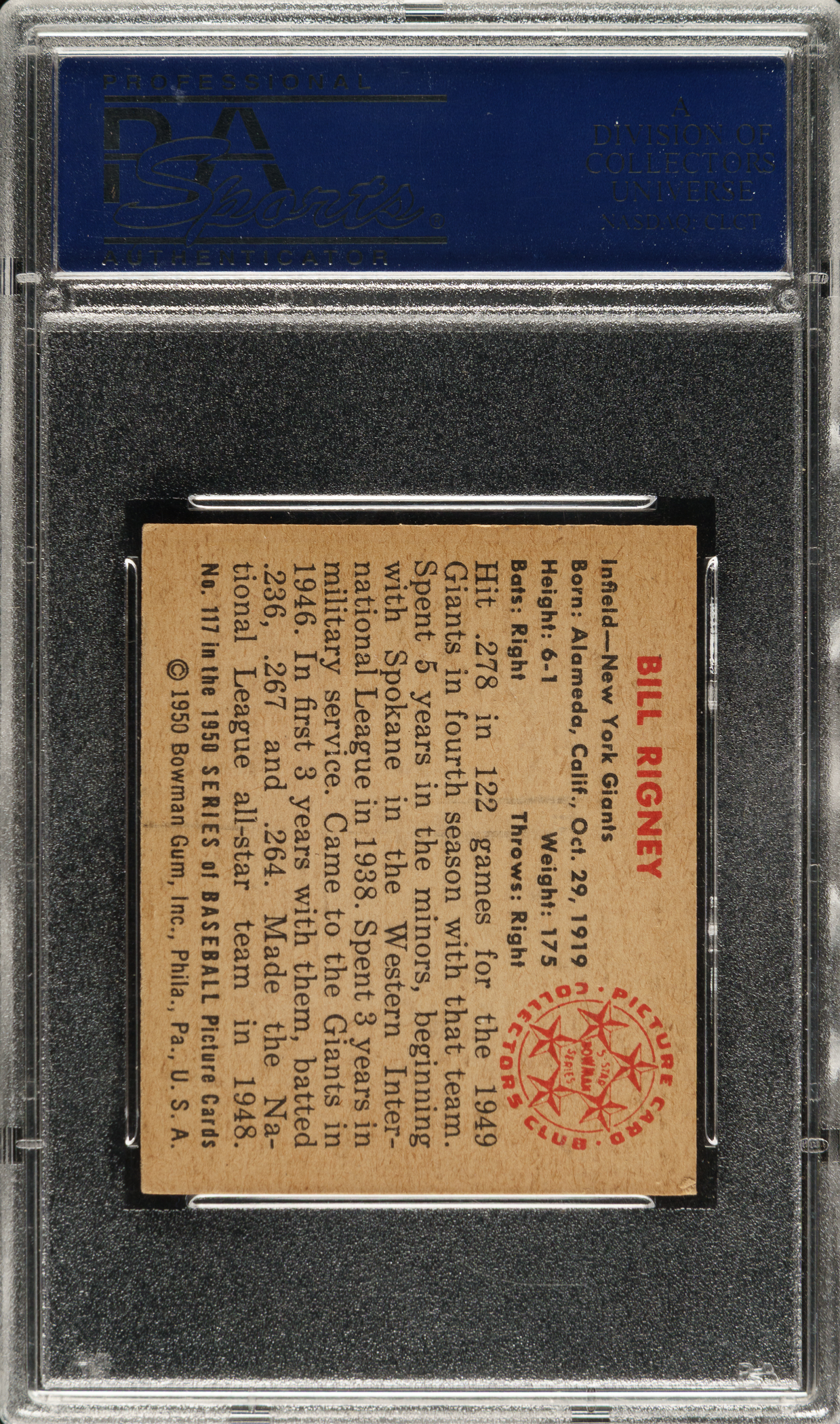 1950 Bowman #117 Bill Rigney PSA NM 7
