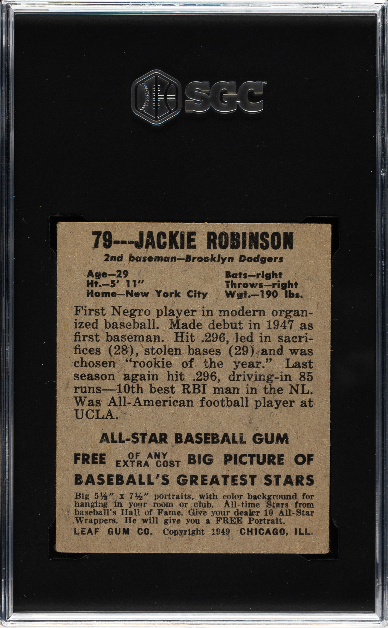 1948-1949 Leaf #79 Jackie Robinson Rookie SGC VG 3