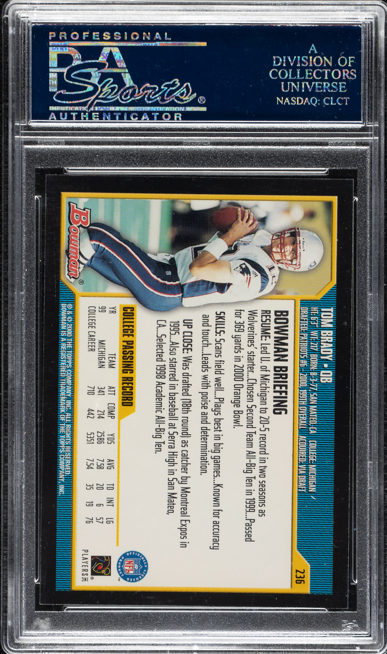 2000 Bowman Football #236 Tom Brady Rookie PSA GEM MINT 10