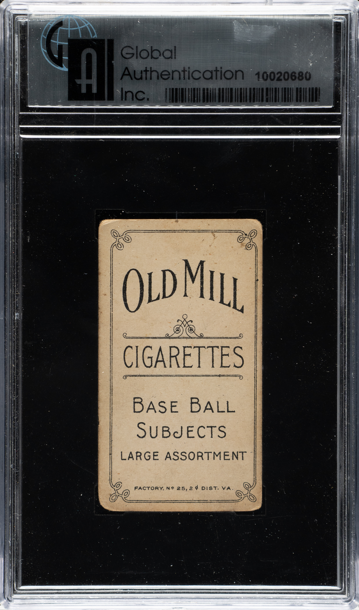Graded VG 3 by GAI. Outstanding T206 White Border of Detroit Tigers Hall of Famer Ty Cobb featuring an Old Mill advertising reverse. Though Old Mill isn't normally considered a rare advertising back, several subjects are rarely found with an Old Mill back, and this is one of them. This well-centered example exhibits a bright green background, excellent registration, and slightly rounded corners. The important advertising reverse is boldly printed and clean. This is a superb Hall of Fame example of this tough Old Mill subject. Please note we do not see any blatant signs of alteration, which is often a concern with cards graded by companies other than PSA or SGC.